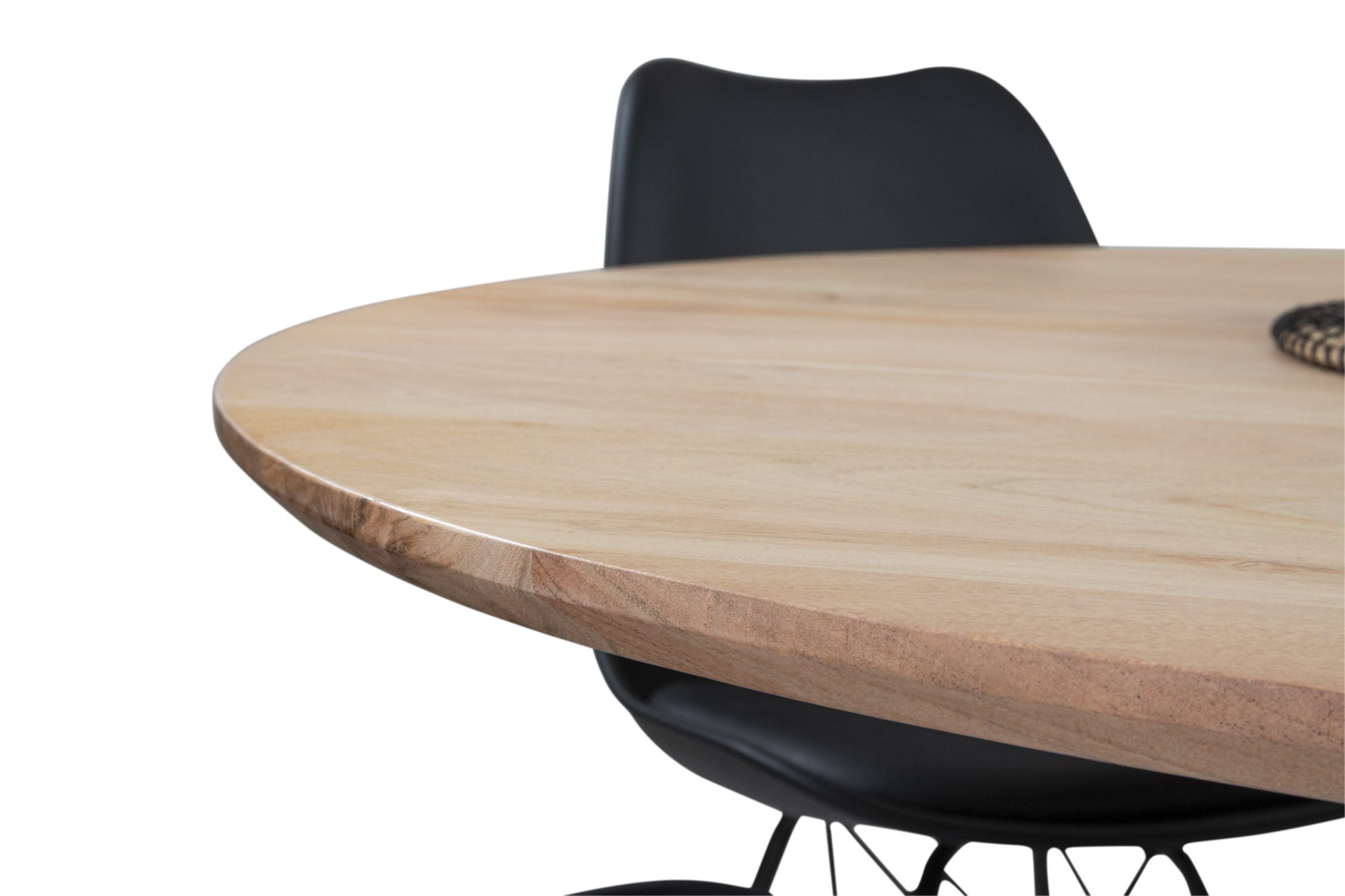 Gefertigt aus massivem Akazienholz, überzeugt die Tischplatte mit natürlicher Härte, lebendiger Maserung und hoher Strapazierfähigkeit. Die warme, naturfarbene Lackierung betont die Struktur des Holzes und schützt zugleich zuverlässig im Alltag.