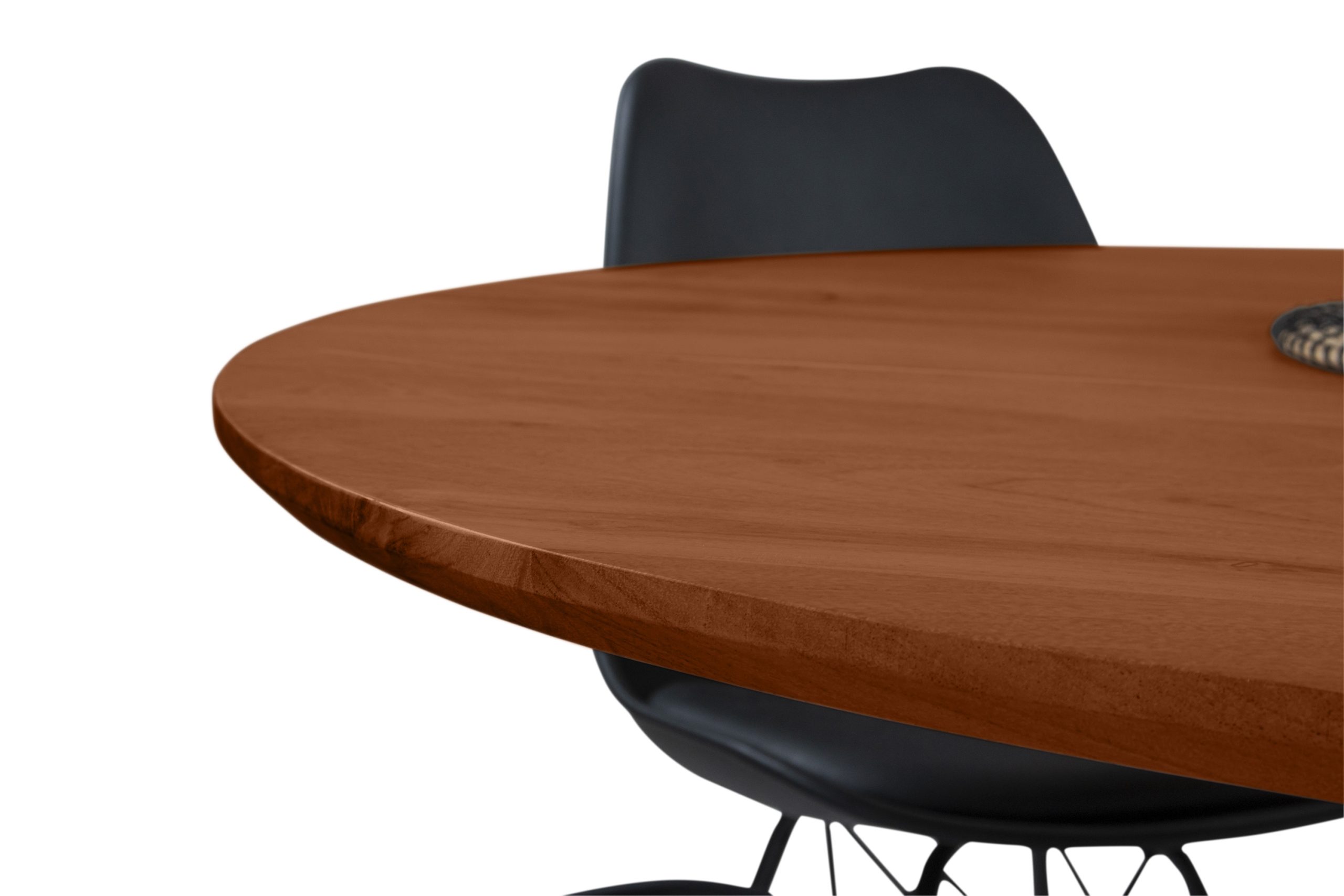 Gefertigt aus massivem Akazienholz, überzeugt die Tischplatte mit natürlicher Härte, lebendiger Maserung und hoher Strapazierfähigkeit. Die warme, nussbaumfarbene Lackierung betont die Struktur des Holzes und schützt zugleich zuverlässig im Alltag.