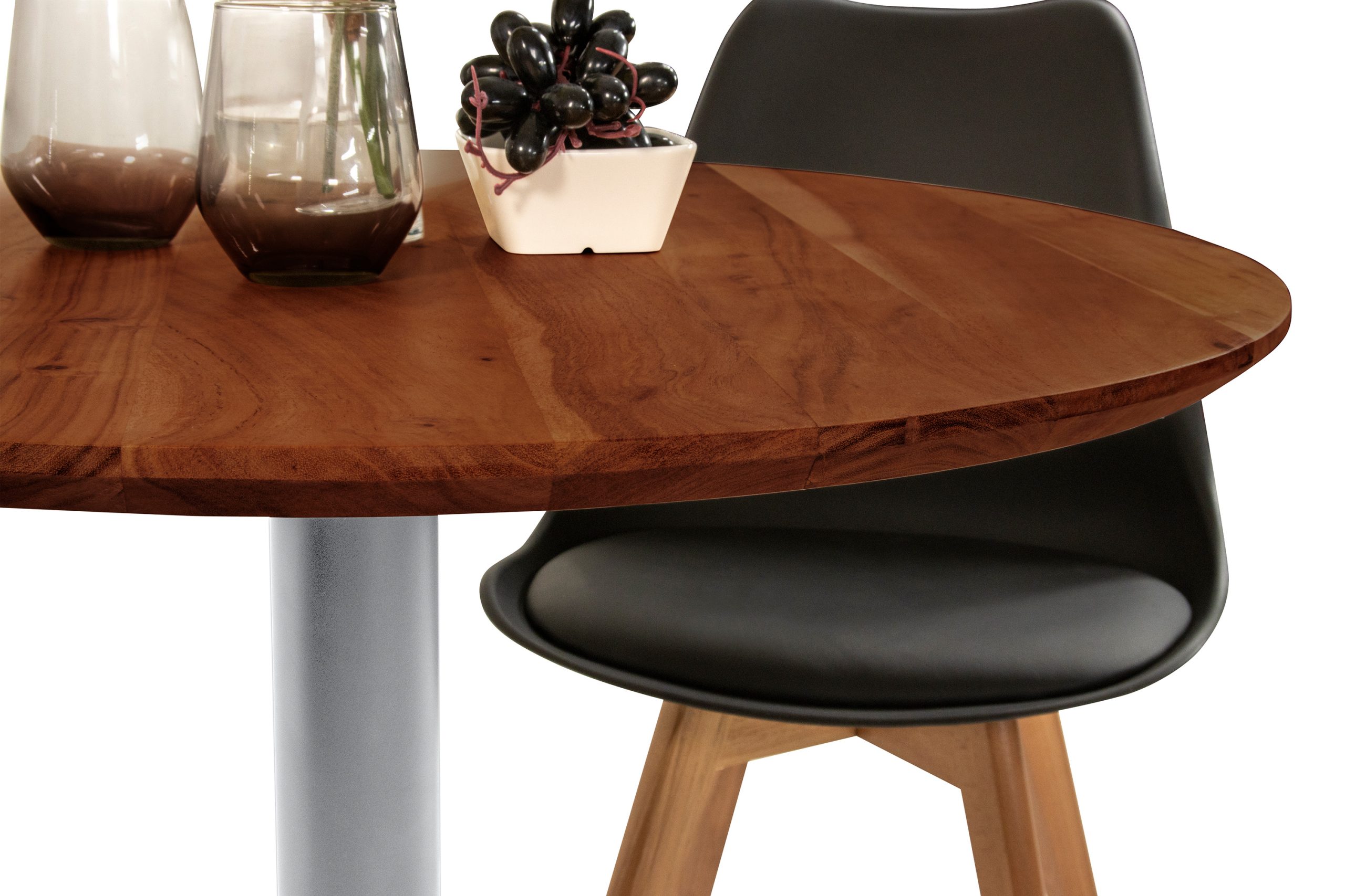 Stabilität bietet der silber lackierte Metallfuß in Säulenform – platzsparend, solide und absolut modern. Brasilia eignet sich ideal als kleiner Holztisch für Küche, Essbereich, Büro oder Gastronomie – ob als platzsparender Esszimmertisch, moderner Bistrotisch oder stylisher Küchentisch.