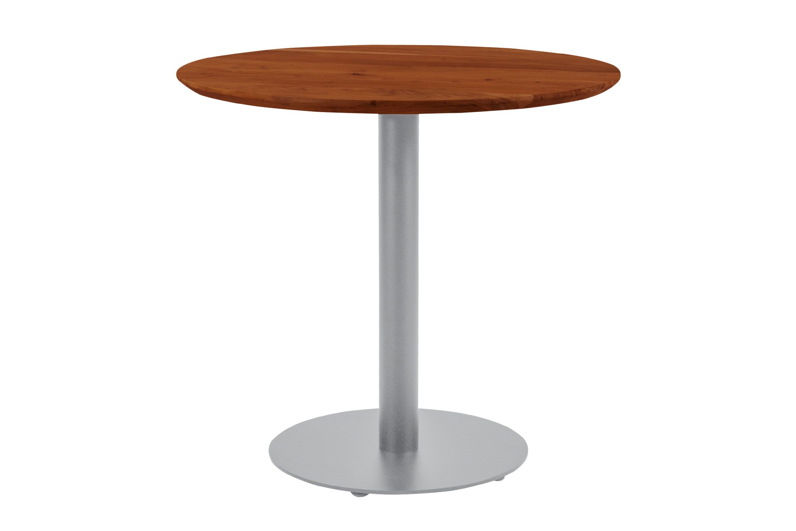 Bistrotisch Brasilian | 80 x 80 cm | Akazienholz massiv + nussbaumfarben | Runde Platte mit Schweizer Kante | Silbernes Gestell aus Metall