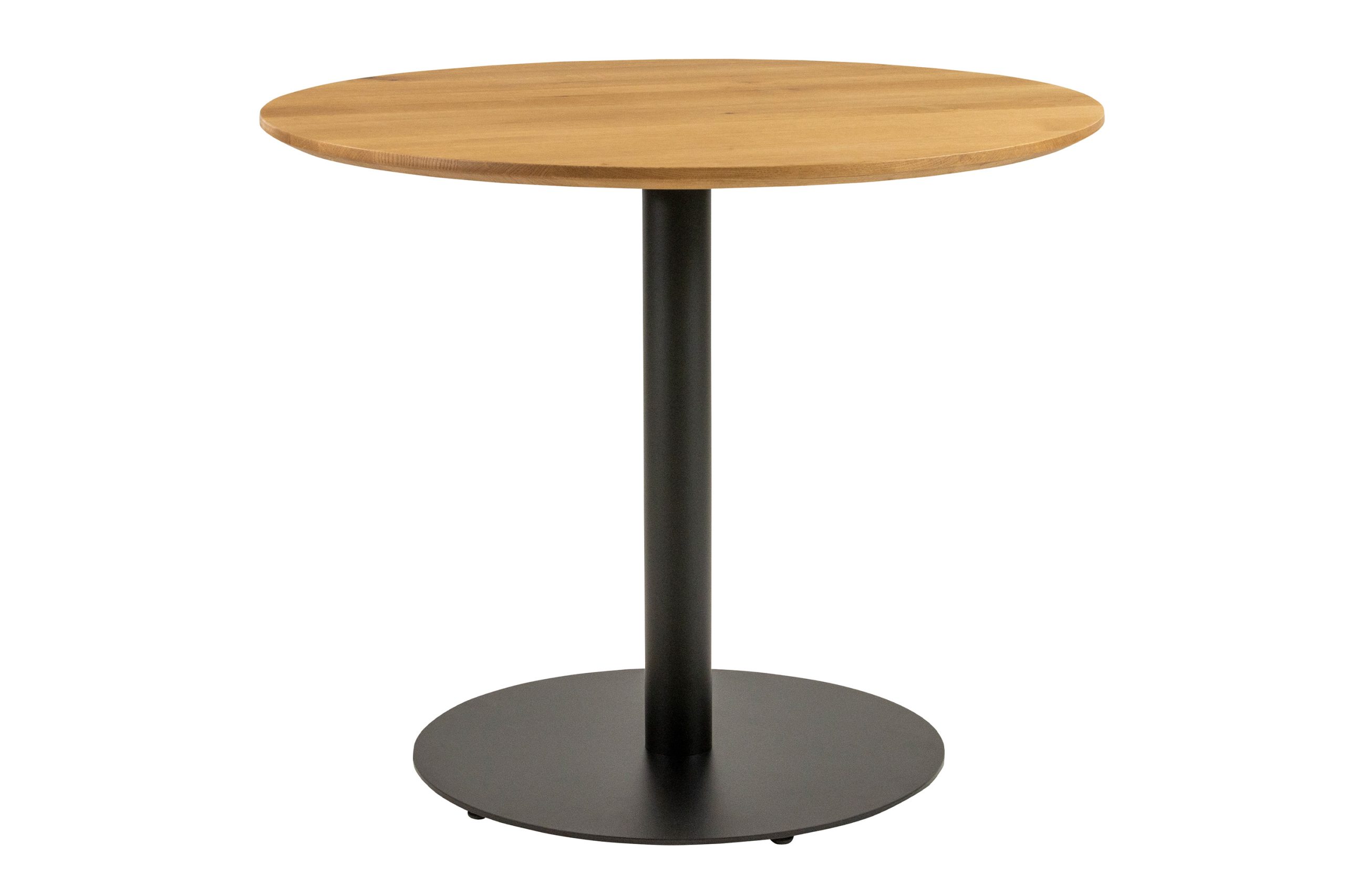 Bistrotisch Brasilian | 100 x 100 cm rund | Eichenholz massiv geölt | schwarzer Säulenfuß Metall | Schweizer Kante