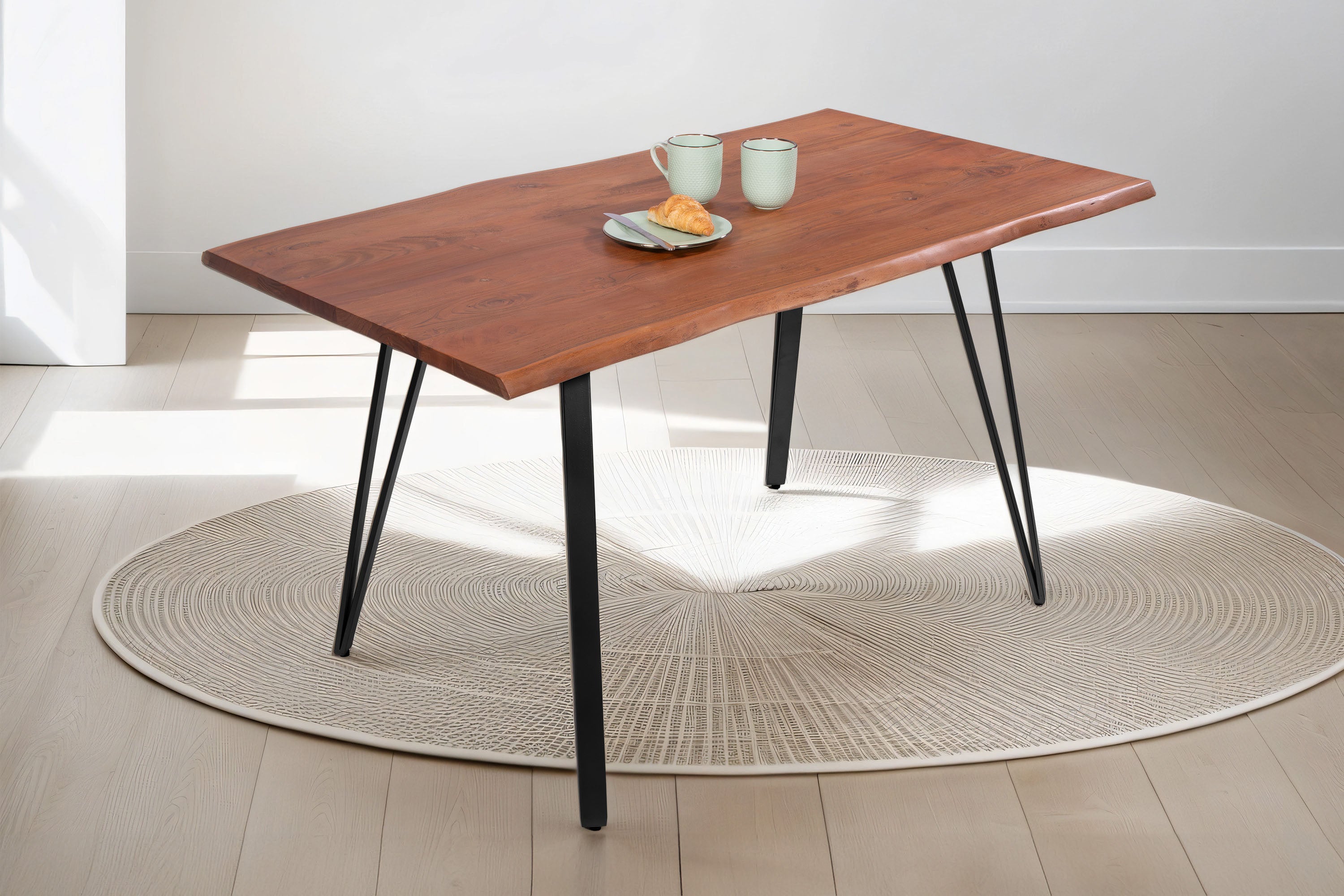 Unsere Massivholztische entstehen aus hochwertigem, echtem Naturholz – und genau das macht ihren besonderen Charakter aus. Jeder Tisch ist ein Unikat, geprägt von der natürlichen Form des Baumstamms und der markanten Baumkante.