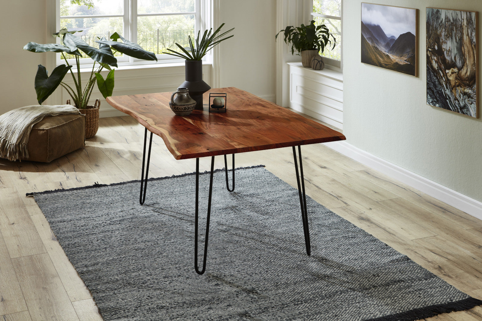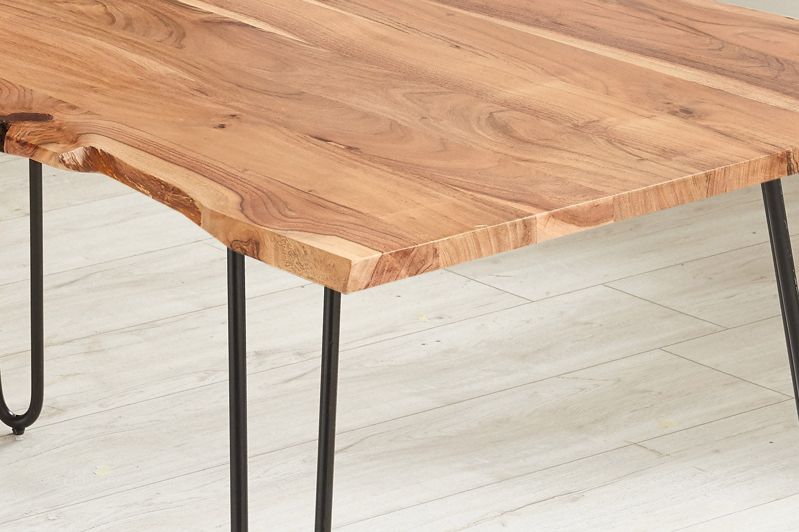 Kleine Risse, Astlöcher und lebendige Farbverläufe sind kein Makel, sondern Ausdruck der Echtheit des Holzes. Sie verleihen jedem Tisch eine individuelle Optik und machen ihn zu einem einzigartigen Möbelstück.