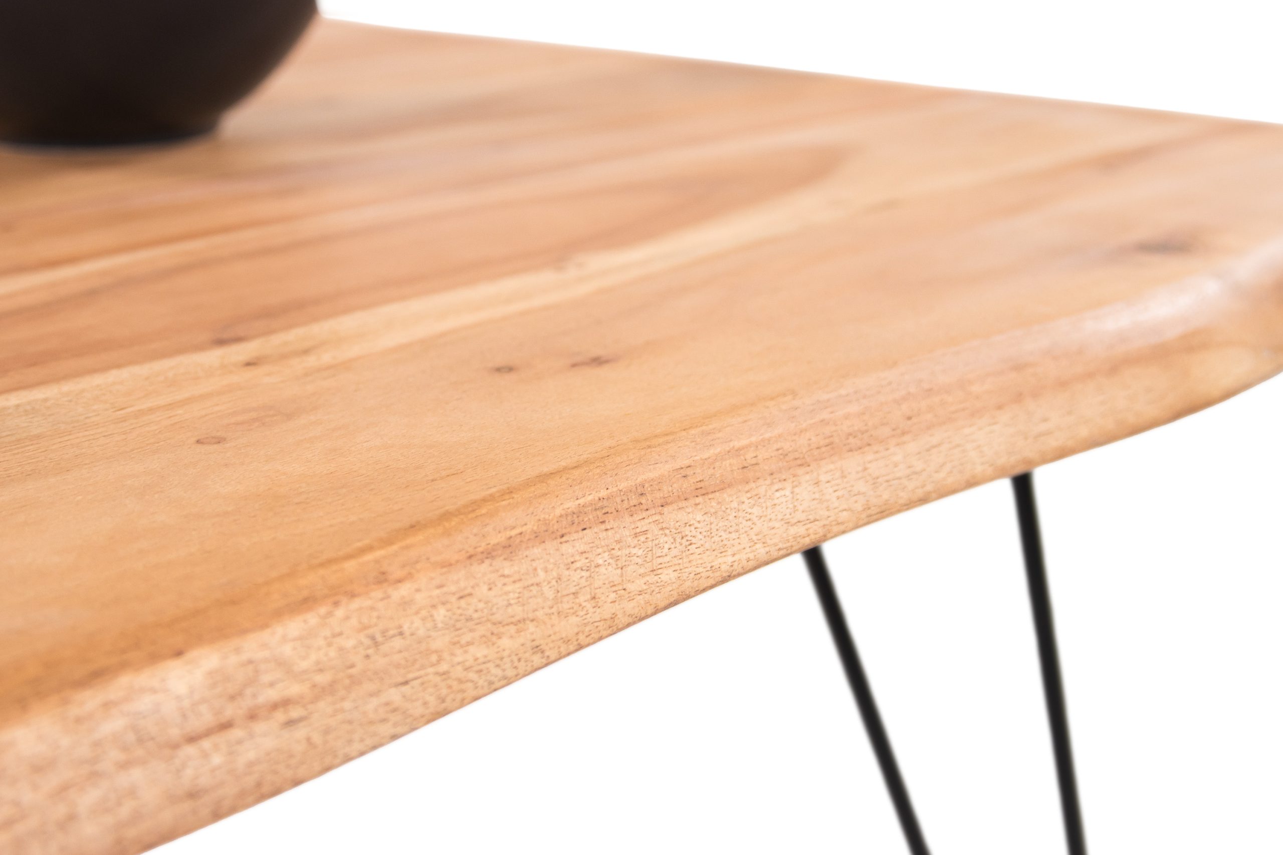 Couchtisch Quintus | 90 x 90 cm | Akazienholz massiv + naturfarben | echte Baumkante | Hairpin-Metallgestell Schwarz