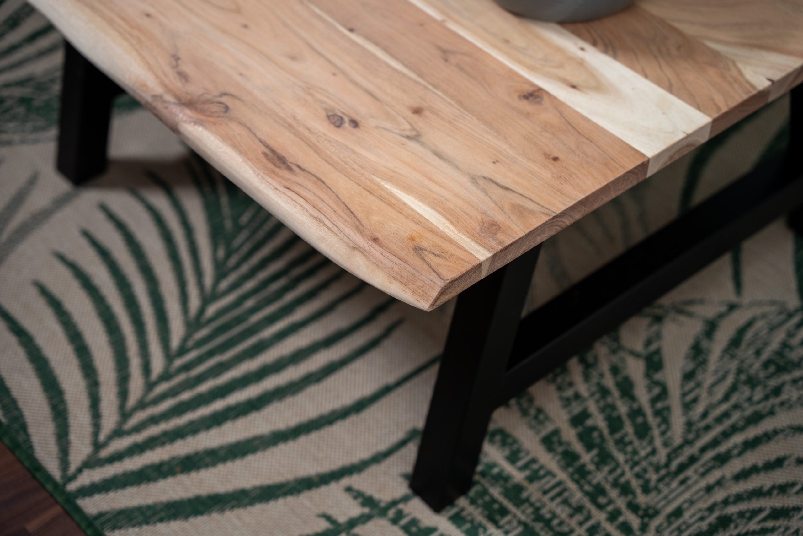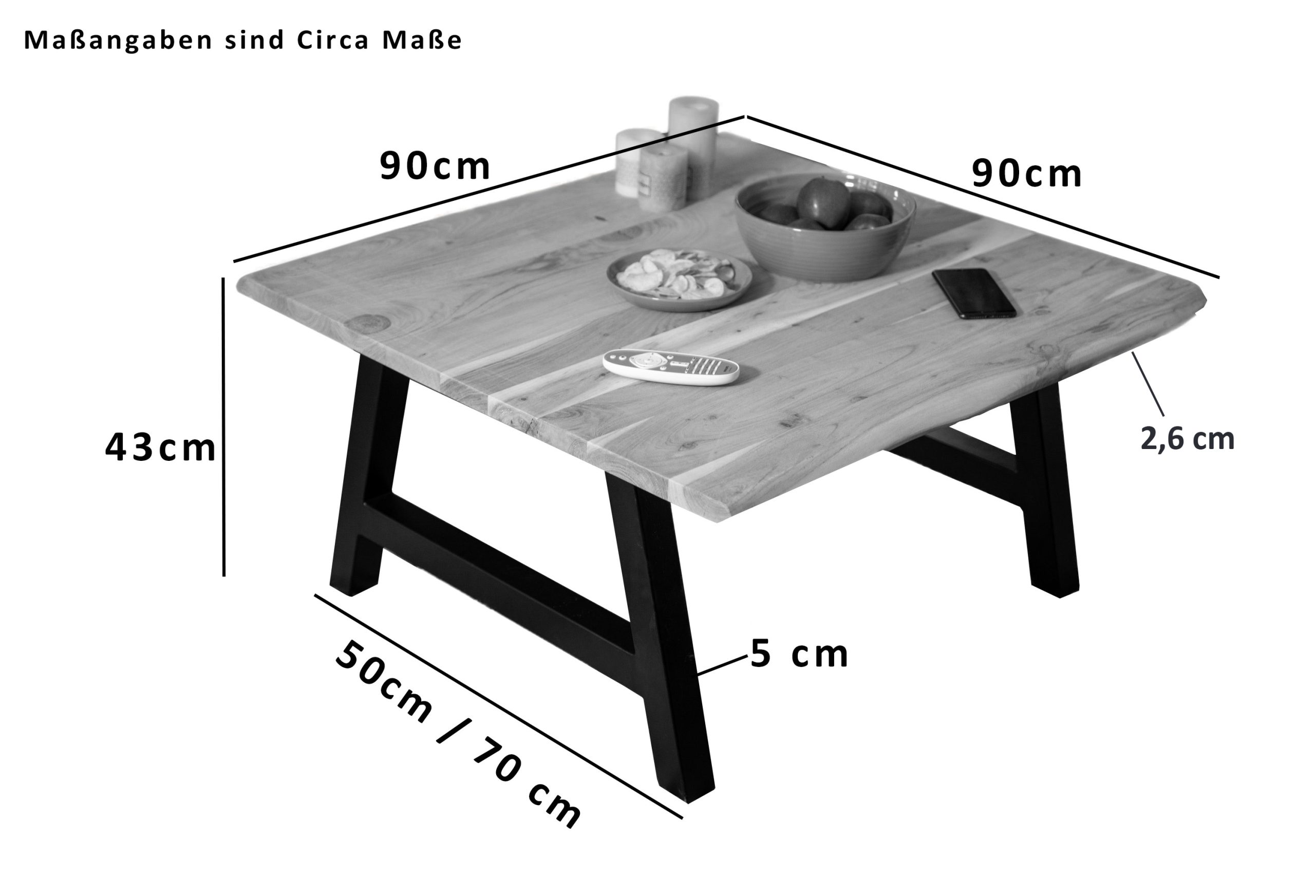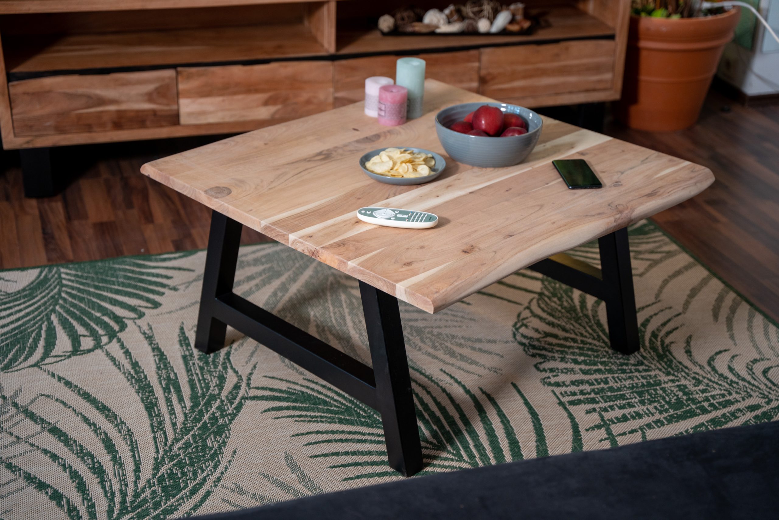 Couchtisch Baumkante 90 x 90 cm Akazie naturfarben A-Gestell schwarz Quintus