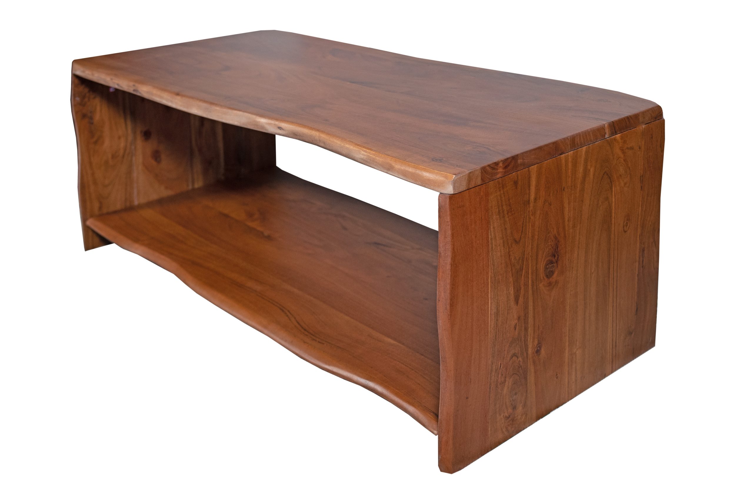 Hochwertiger Couchtisch Ada, Akazienholz nussbaumfarben & massiv, mit Ablagefläche, echte Baumkante, 115 x 55 x 45 cm