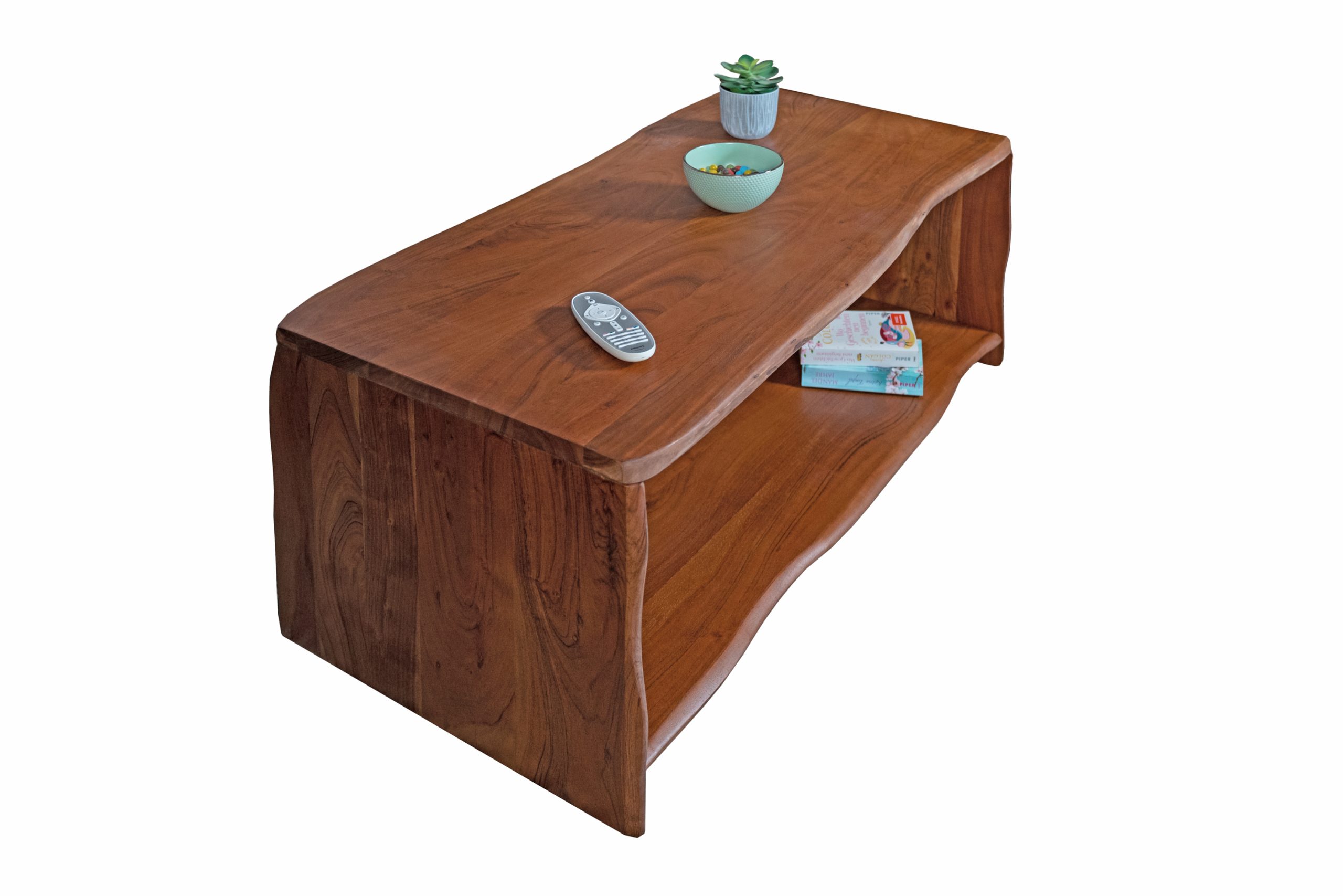 Für dieses Möbelstück wird ausschließlich bestes Akazienholz verwendet. Dies verleiht dem Couchtisch eine hochwertige Qualität und ansprechende Optik. Jedes Exemplar besitzt zudem eine individuelle Maserung und ist daher ein Unikat. Erleben Sie die Schönheit natürlicher Materialien mit diesem exklusiven Couchtisch.