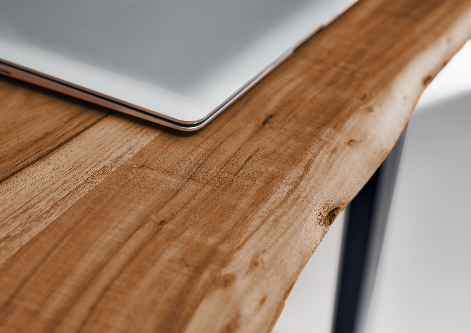 Natürliche & einzigartige Holzmaserung, U-Gestell in schwarz, mit echter Baumkante