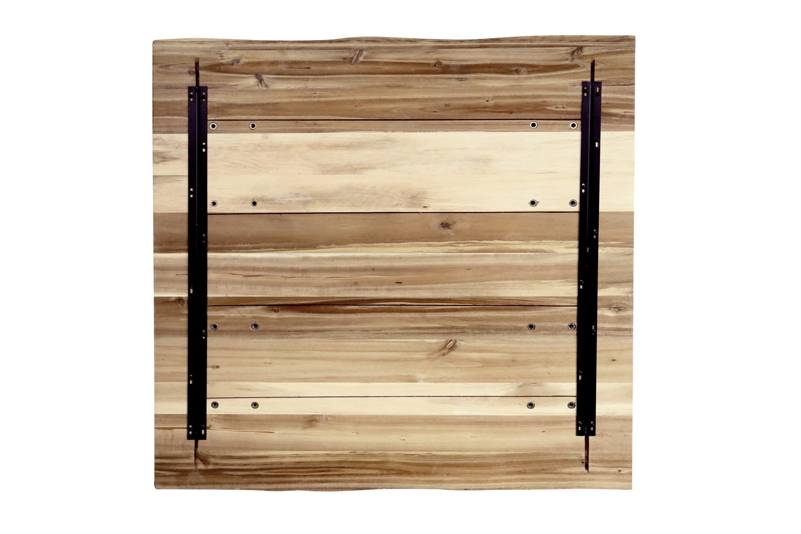 - Der in Handarbeit gefertigte Tisch hat eine 90 x 90 cm große Tischplatte.