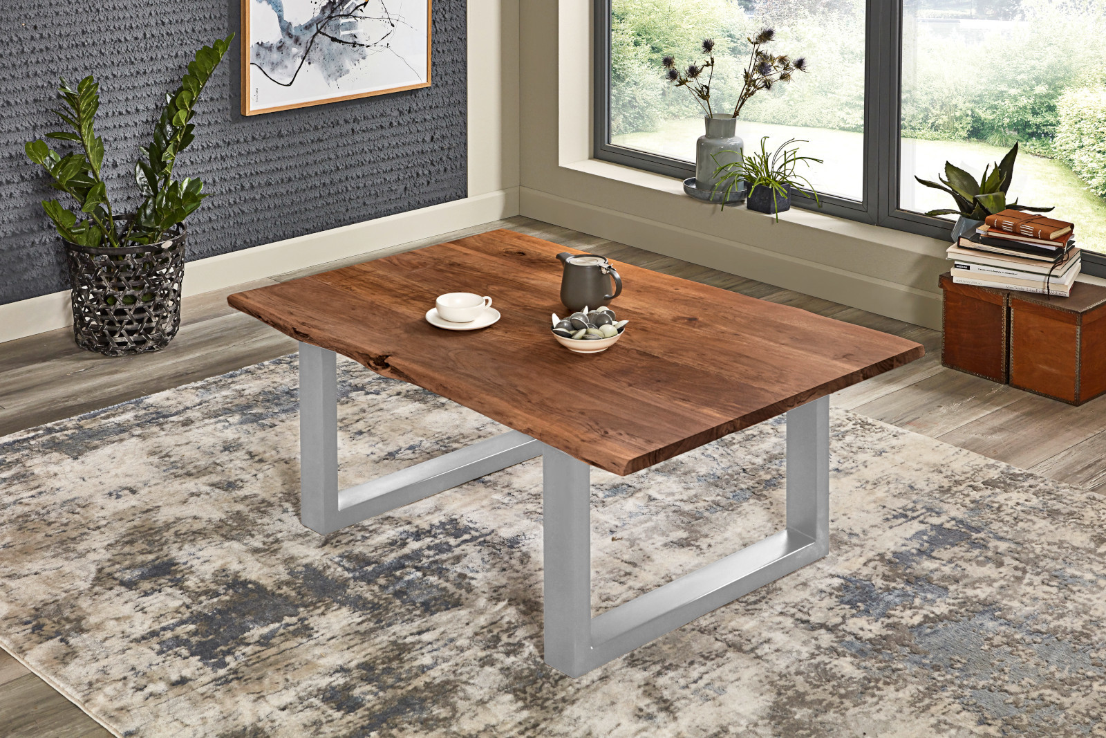 Couchtisch Billy, Sofatisch 130 x 75 cm, Massivholz Akazie, Nussbaumfarben / Silber