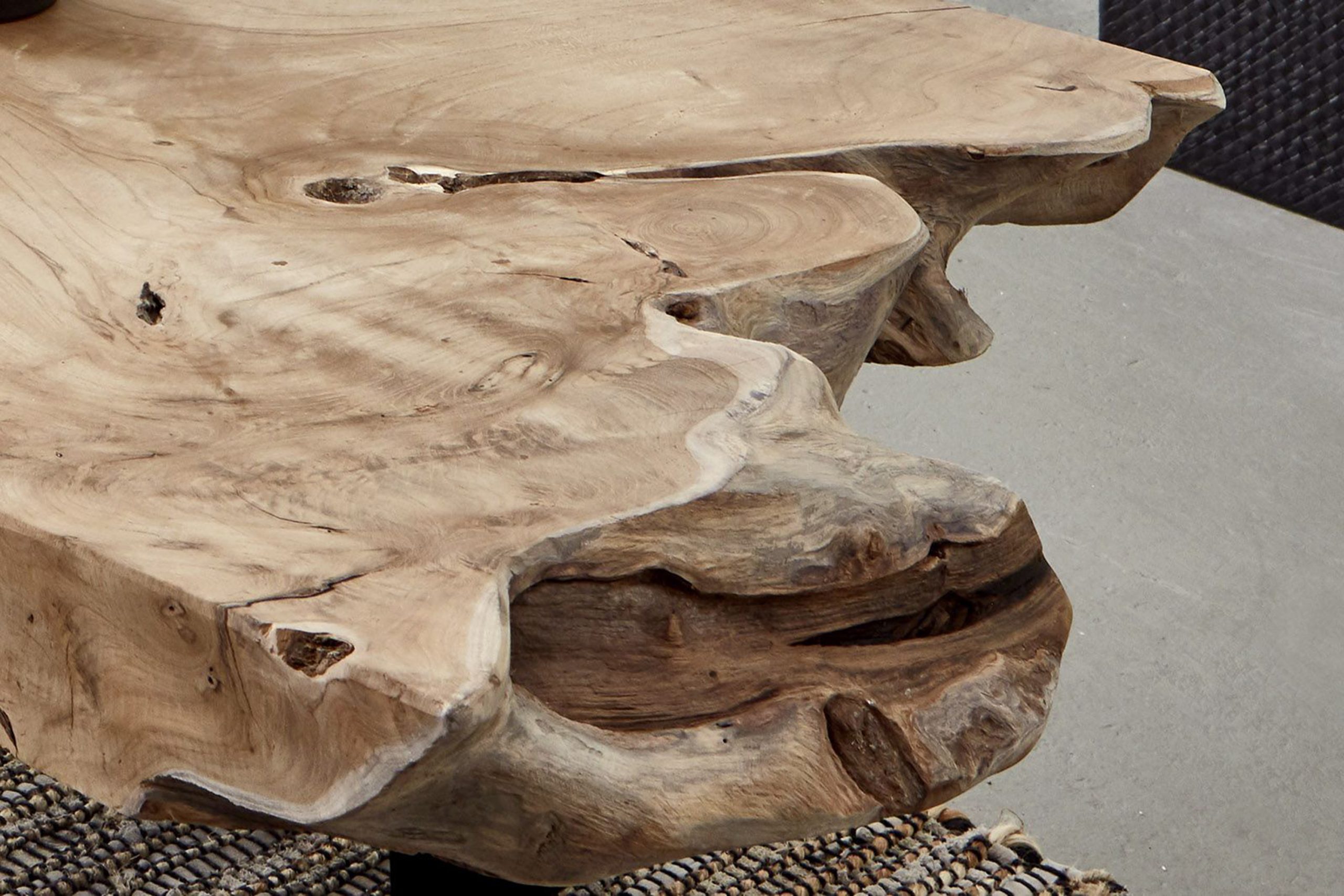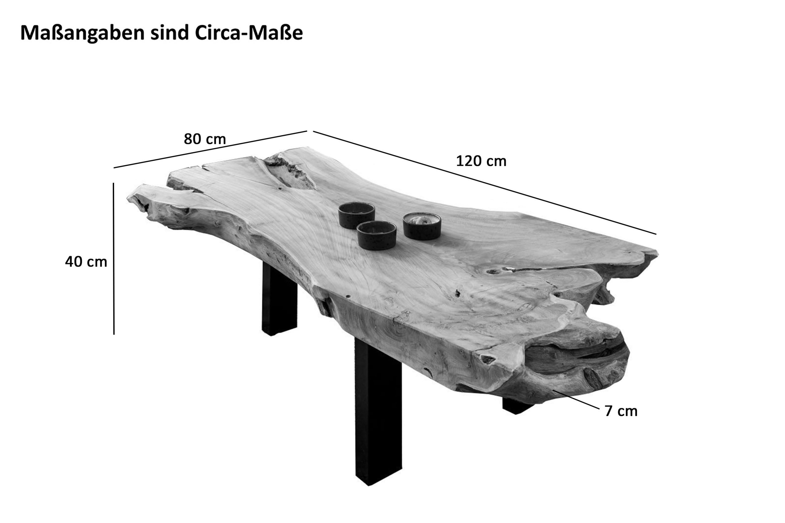 • Die Tischplatte besteht aus einer Wurzelscheibe mit einer Dicke von etwa 7 cm.