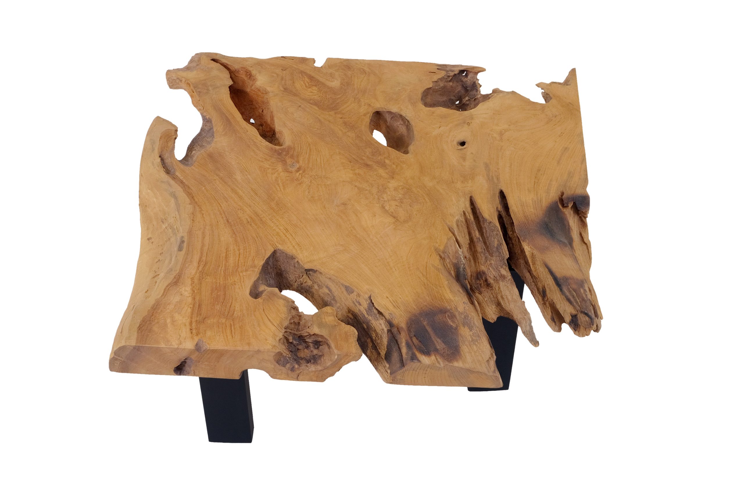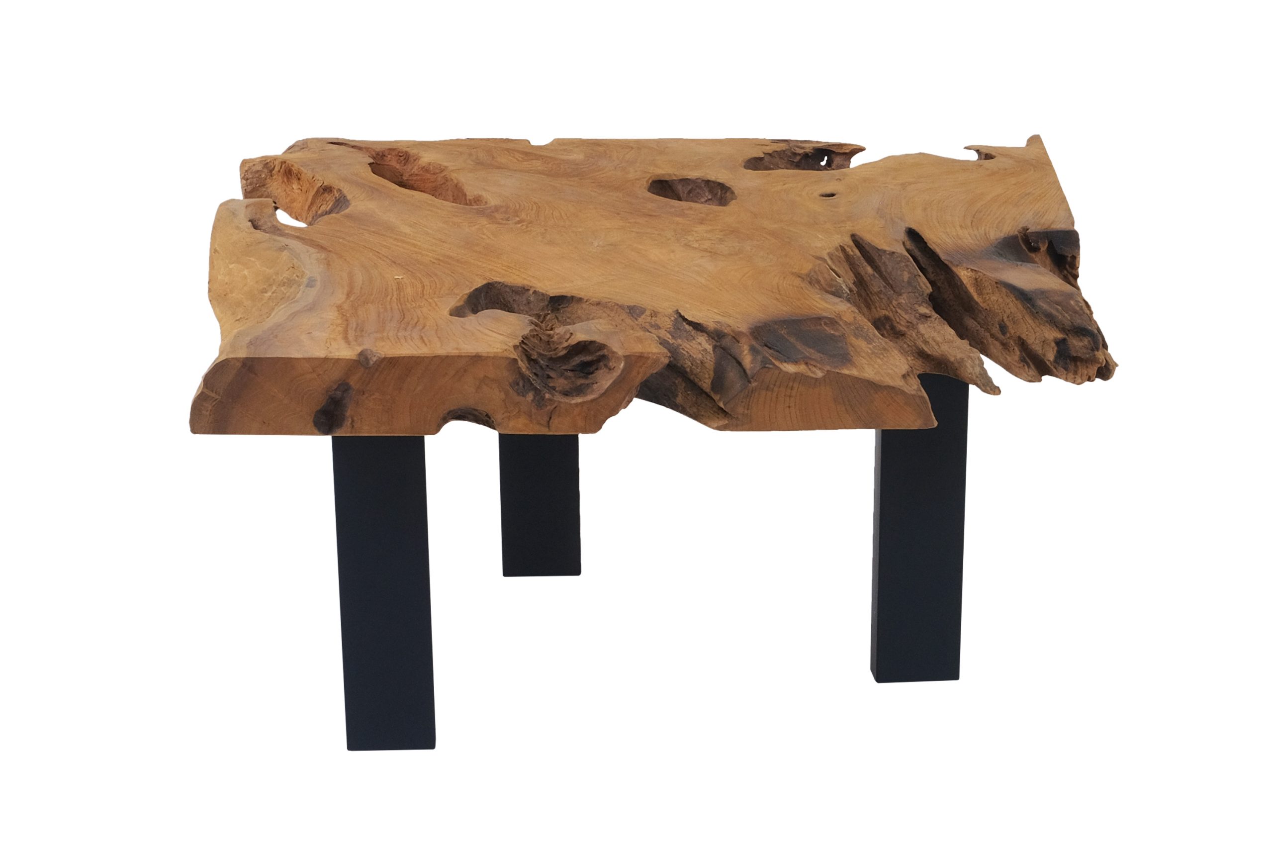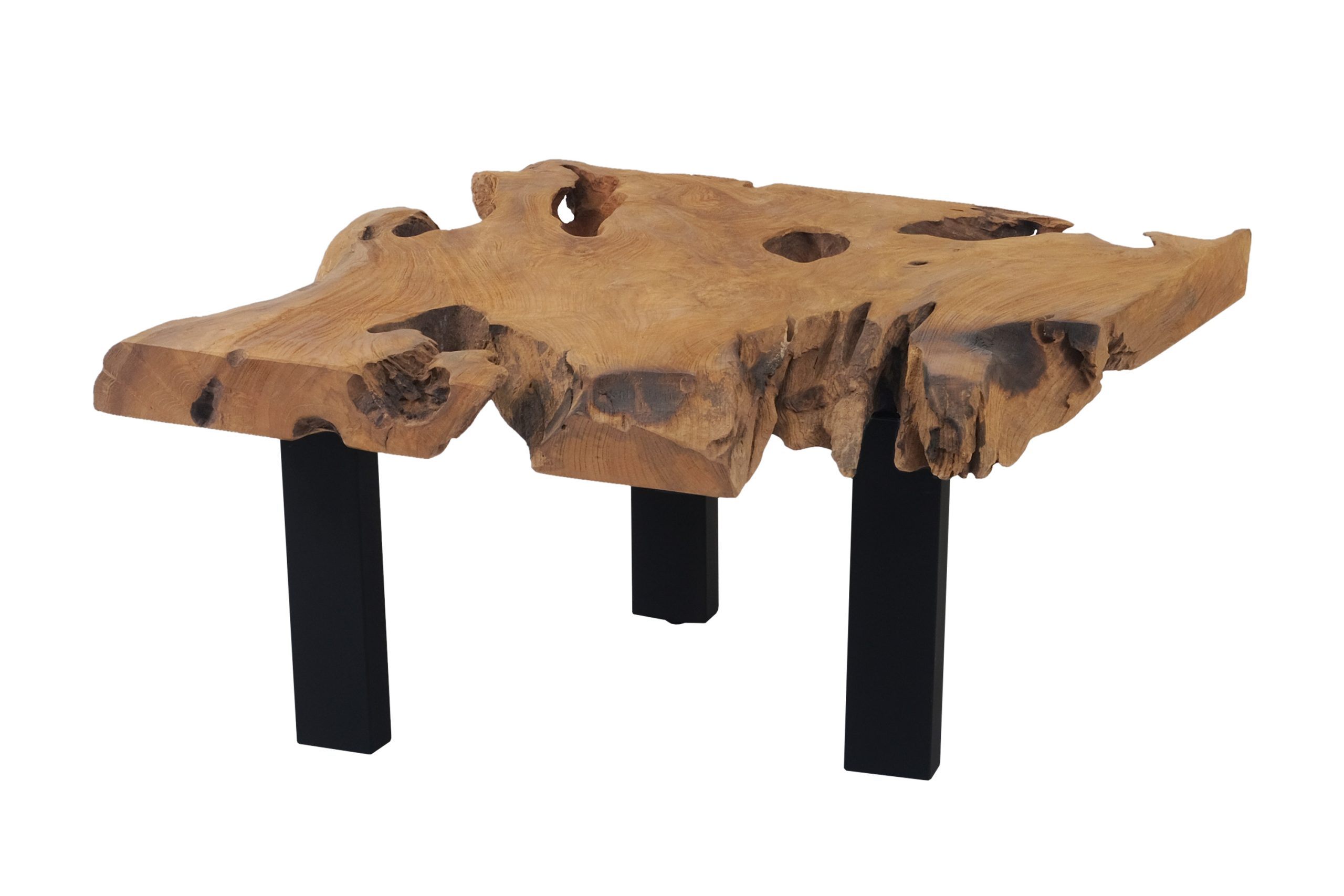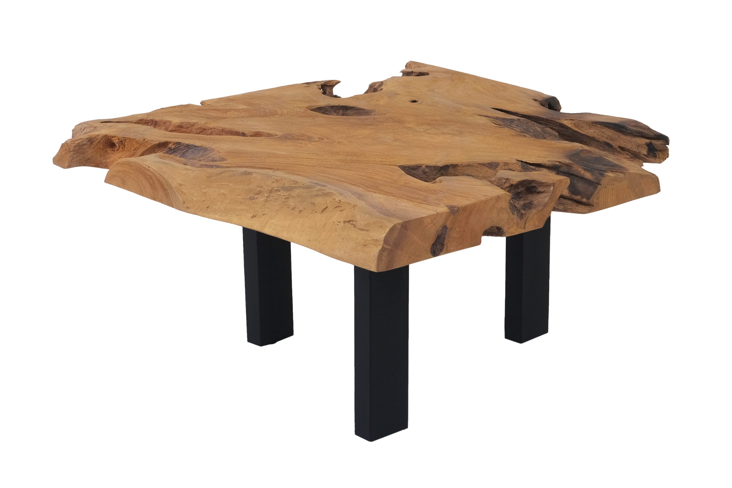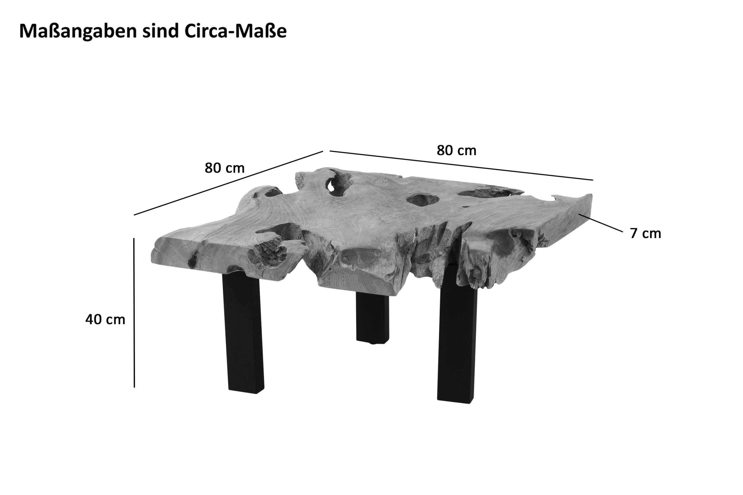 Couchtisch Ibiza, Beistelltisch aus Wurzelholz 80 x 80 cm, Massivholz Teakholz, Naturbelassen / Schwarz