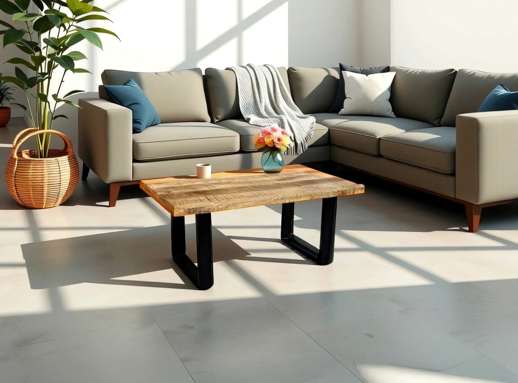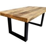 Der Couchtisch verbindet natürliche Schönheit mit modernem Design. Die massive Mangoholzplatte mit geraden Kanten verleiht dem Tisch eine klare, moderne Optik, während das U-Gestell einen stabilen und stilvollen Kontrast setzt. Ideal für jedes Wohnzimmer.