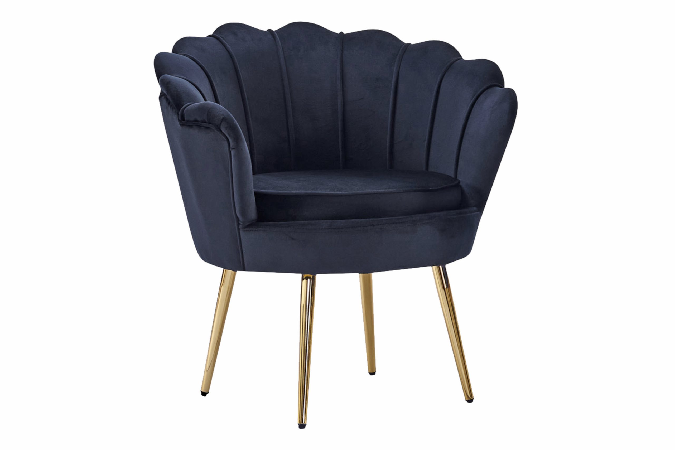 Edler Design-Armlehnsessel Big Chair mit schwarzem Samtbezug, goldenen Metallfüßen, Retro-Look