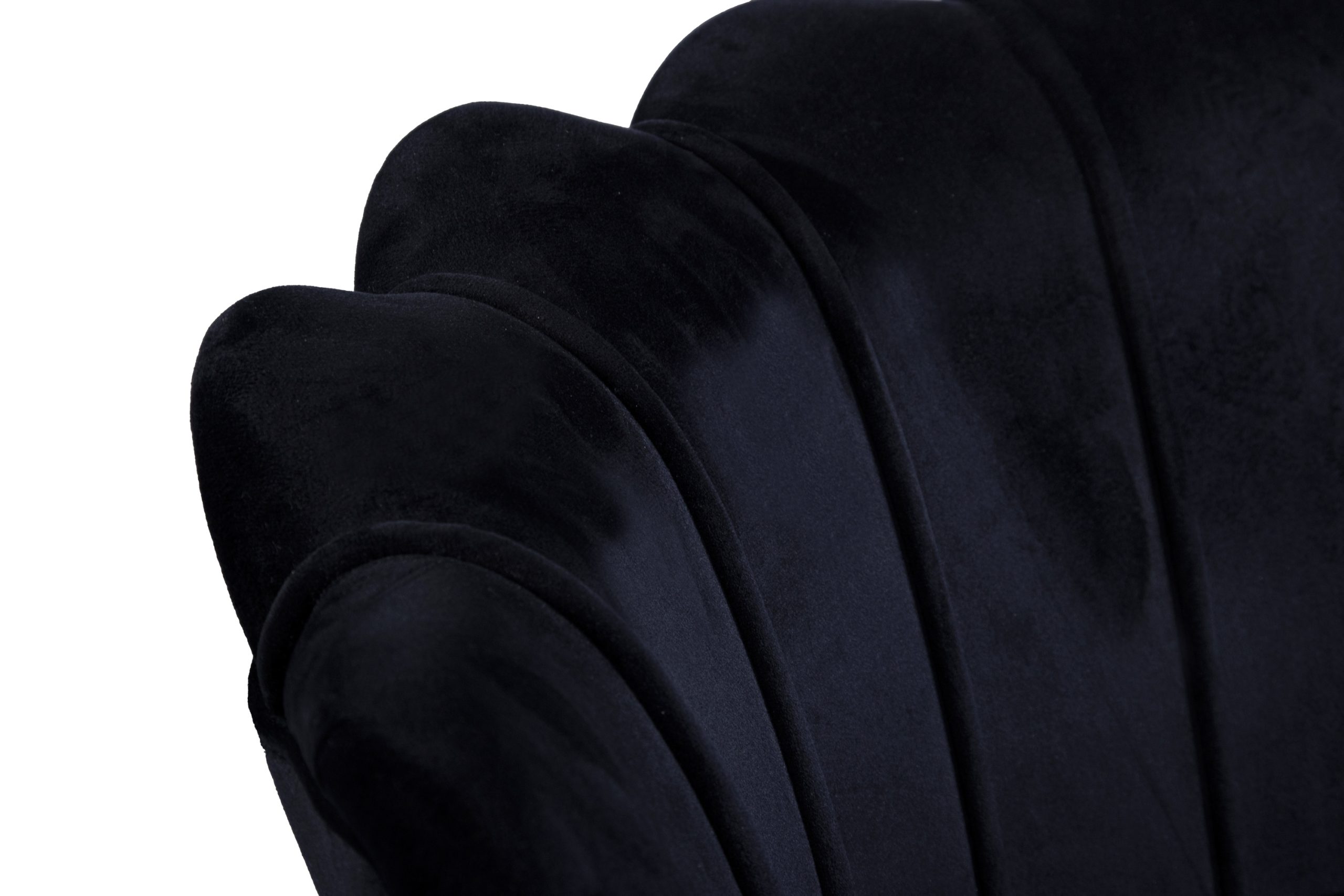 - Sitz- und Rückenfläche sind mit einem attraktiven Samtbezug in Schwarz bezogen.