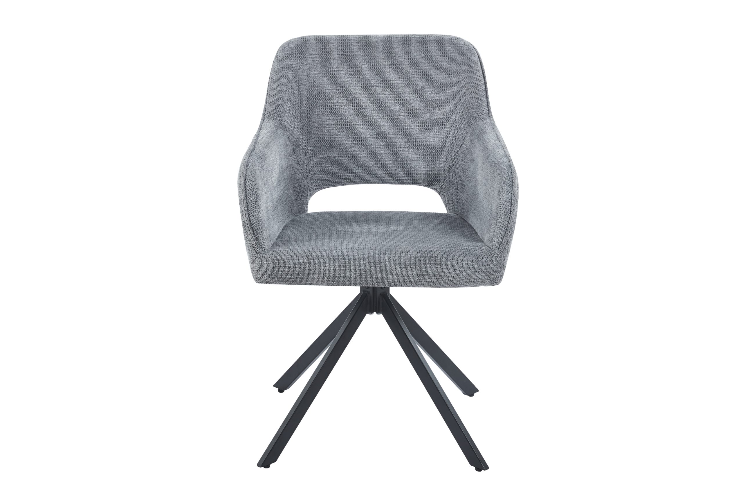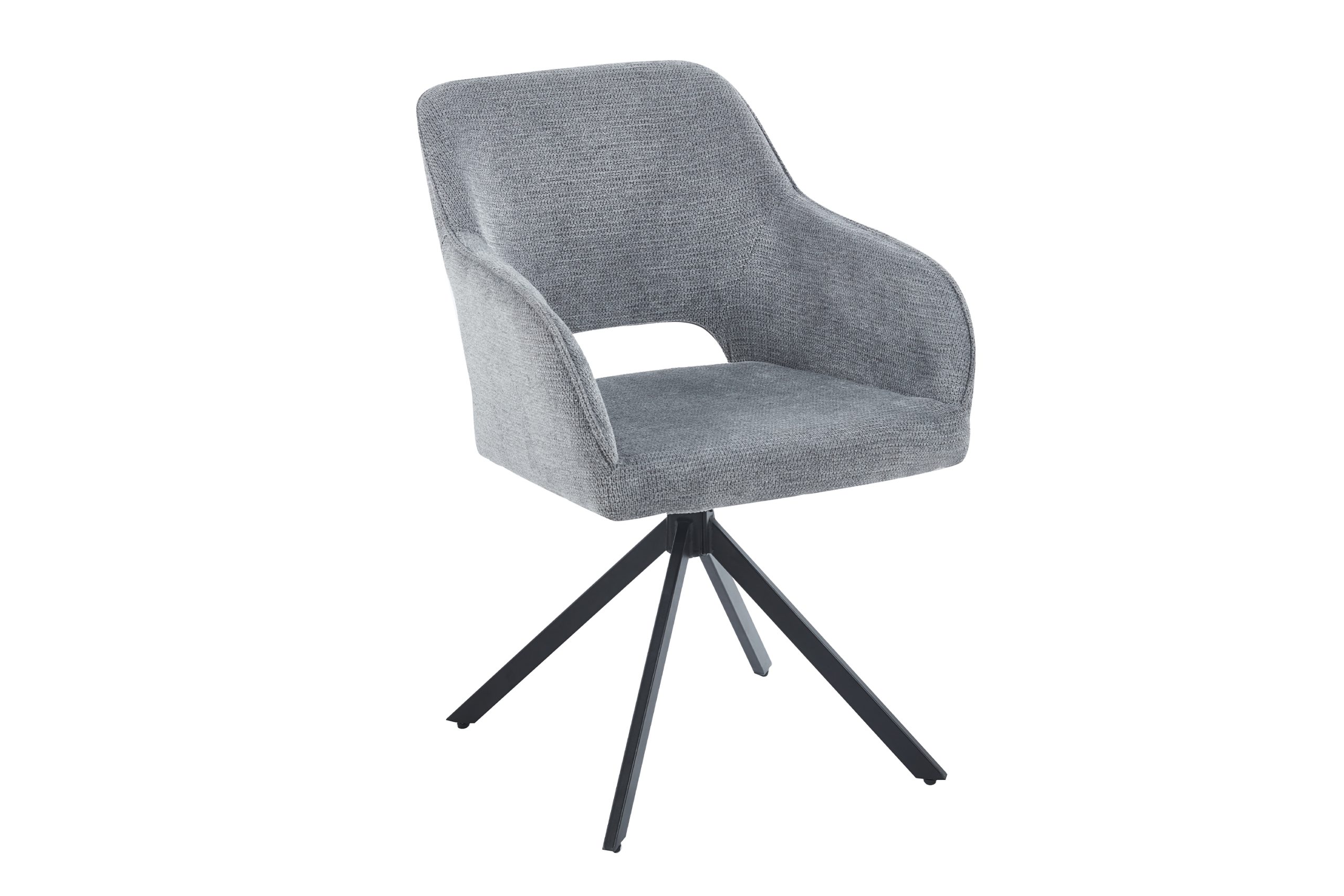 Esszimmerstuhl Milly | Stoffbezug in Silber | 360° drehbar | Schwarzes Metallgestell