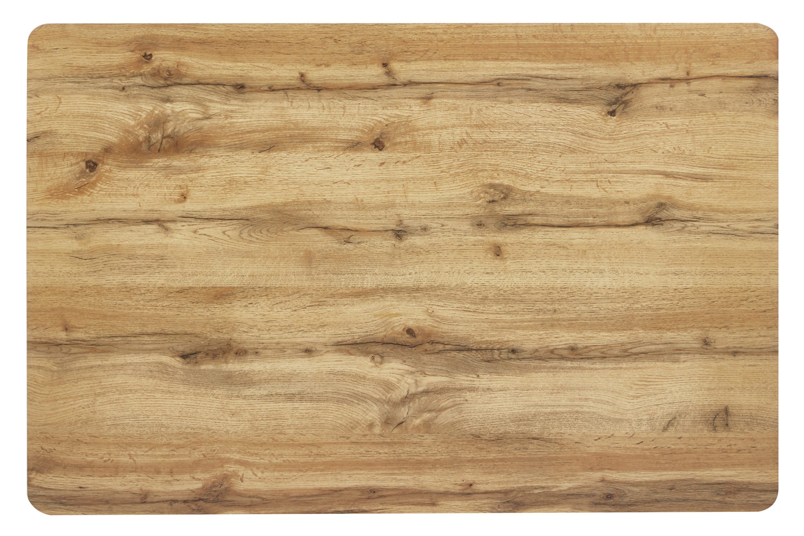 - 25 mm starke MDF-Platte mit einer Oberfläche in Wildeiche-Optik und Schweizer Tischkante für eine moderne Optik.
