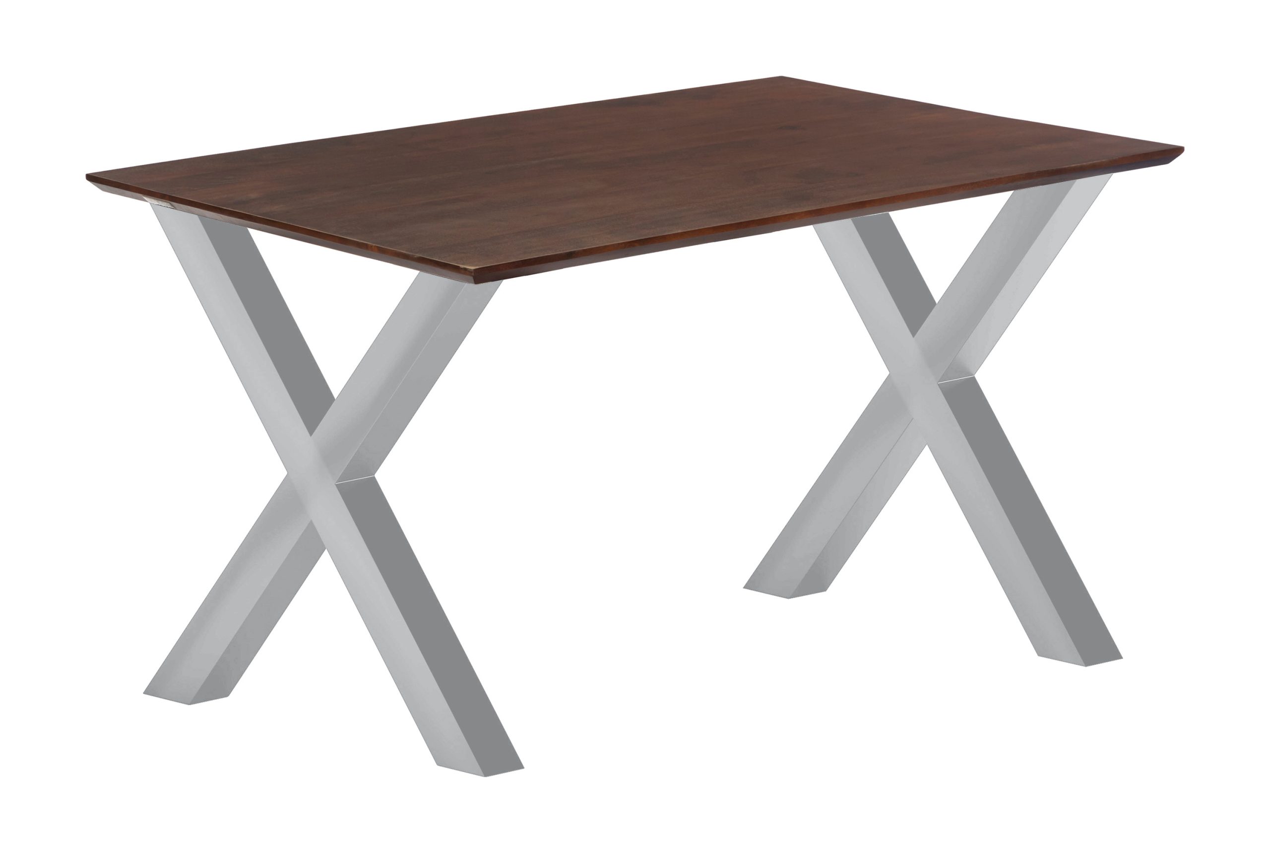 Esstisch Rita | 120 x 80 cm | Akazienholz massiv kastanienfarben | X-Gestell Silber | Schweizer Kante