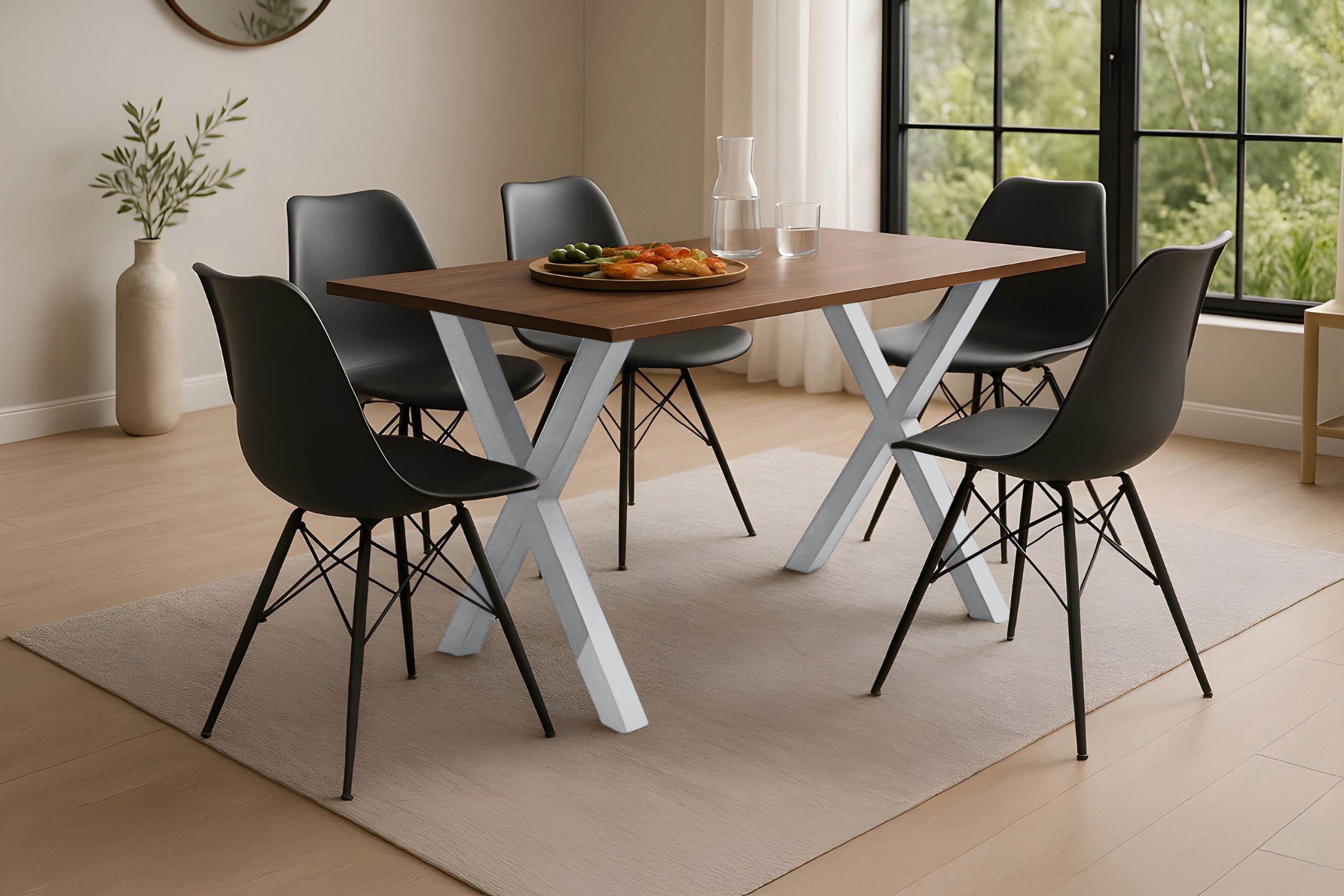 ✔ Robustes X-Gestell – lackiertes Eisen in elegantem Silber