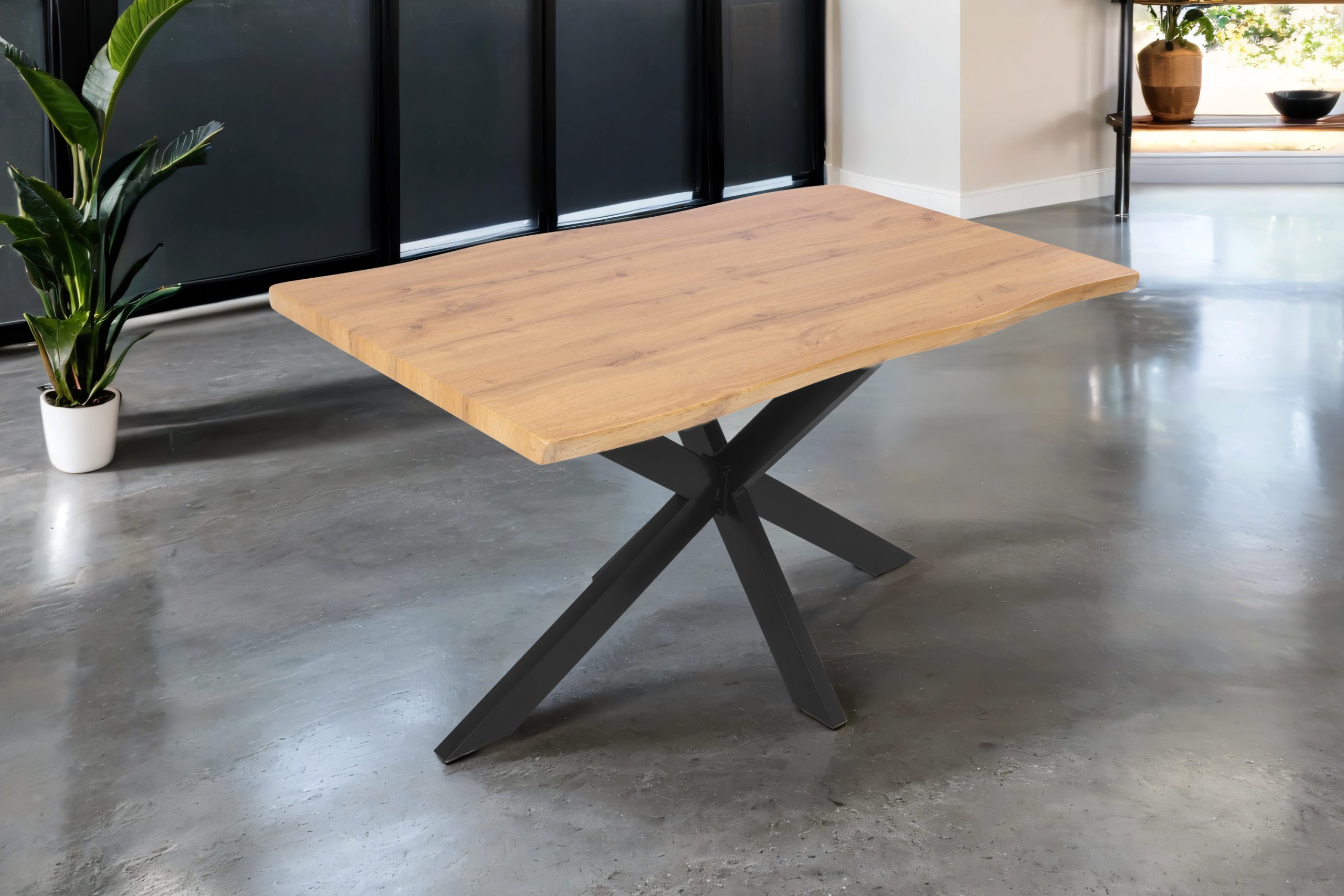 Esstisch Josy | Holz Wildeiche-Optik | Spider-Gestell Metall schwarz | 120 x 80 cm | 40 mm Tischplatte mit gefräster Baumkante