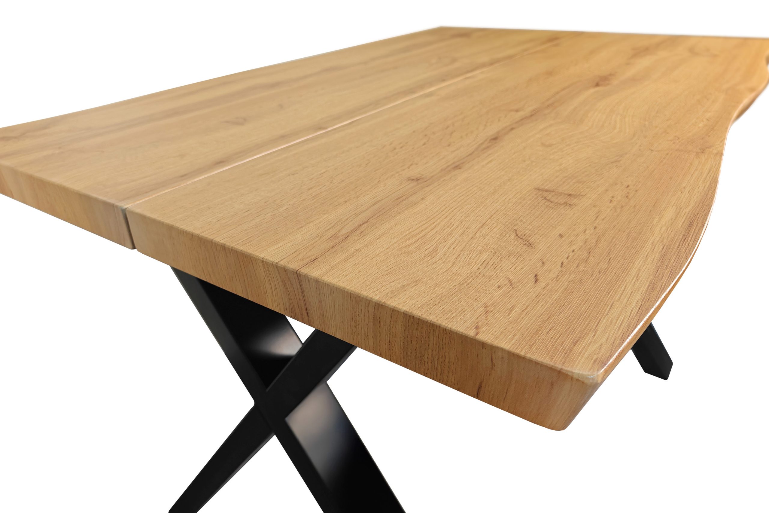 Esstisch Dua | 120 x 80 cm | Wildeiche-Optik | X-Gestell Metall schwarz | 40 mm Tischplatte mit gefräster Baumkante