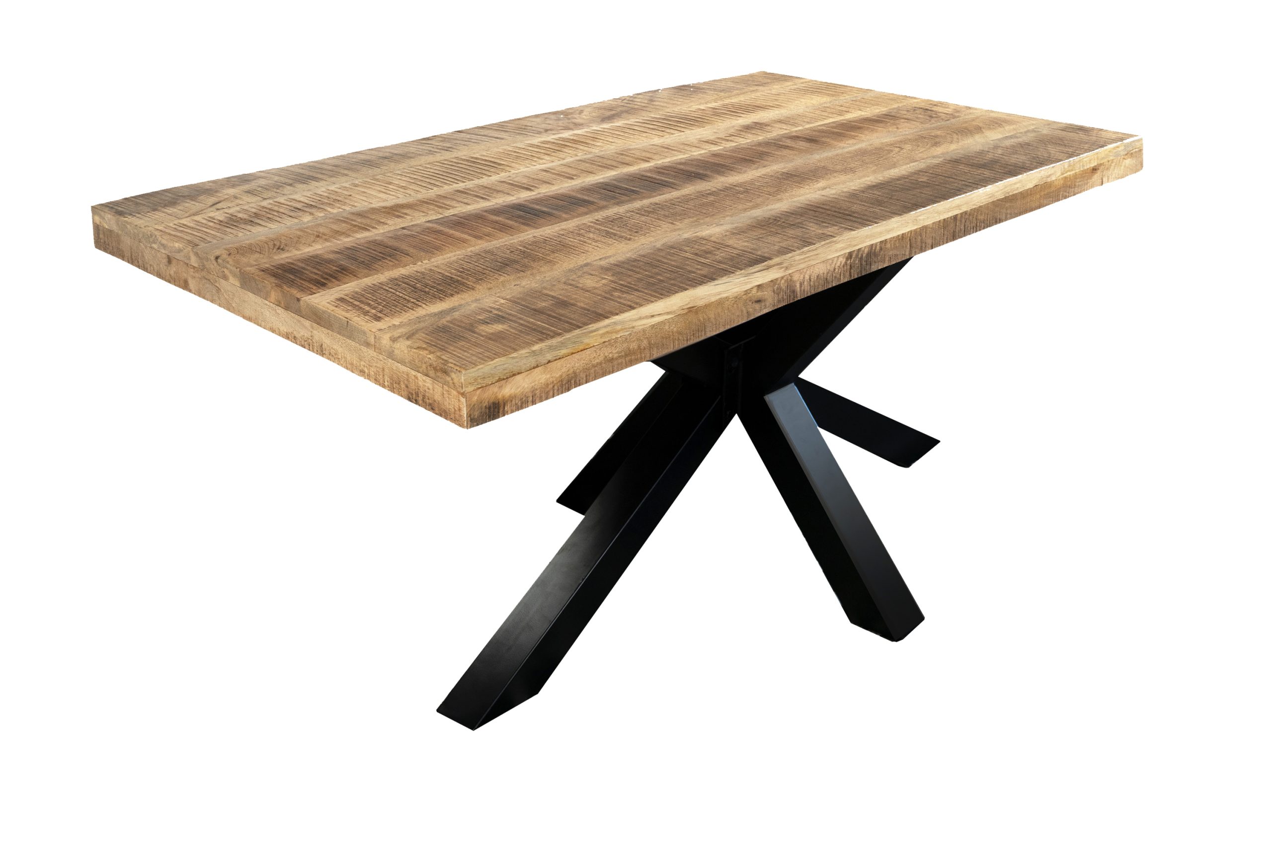 Esstisch 120x80cm Mangoholz gerade Kante Spider-Gestell schwarz RIO
