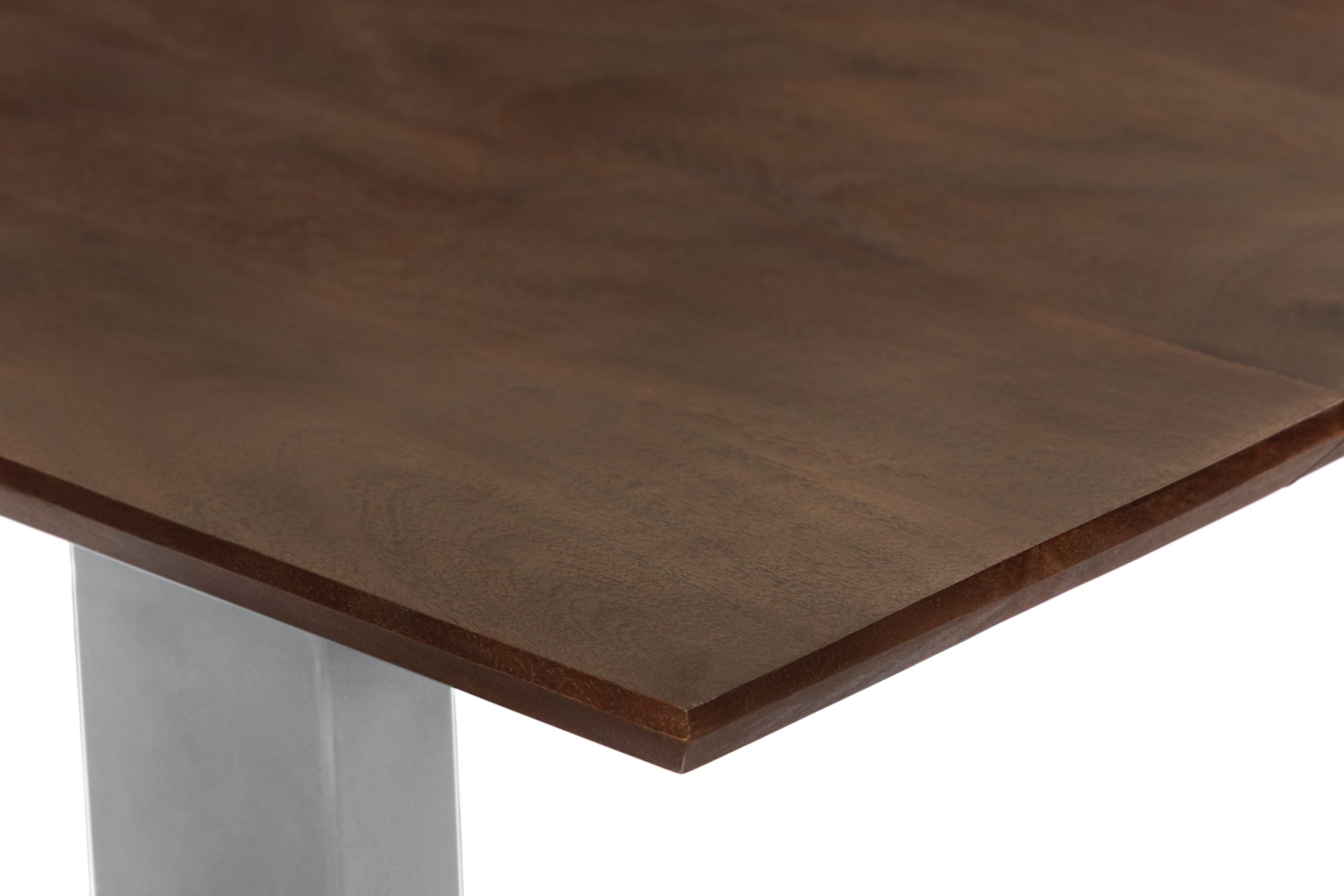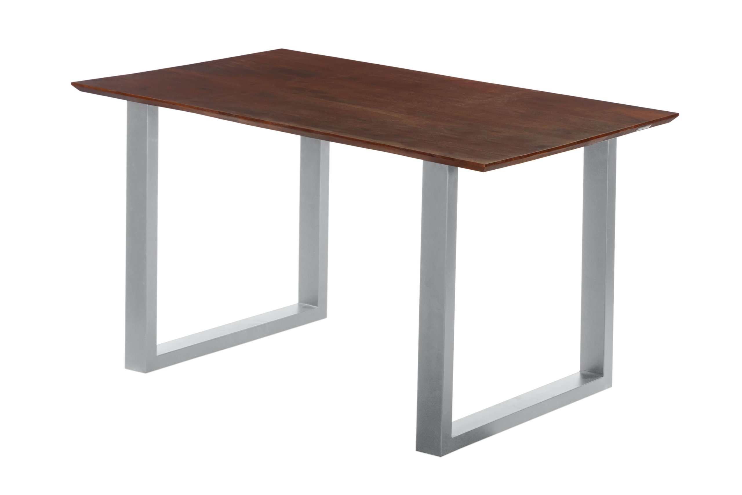 Esstisch Rita | 140 x 80 cm | Akazienholz massiv kastanienfarben | U-Gestell Silber | Schweizer Kante