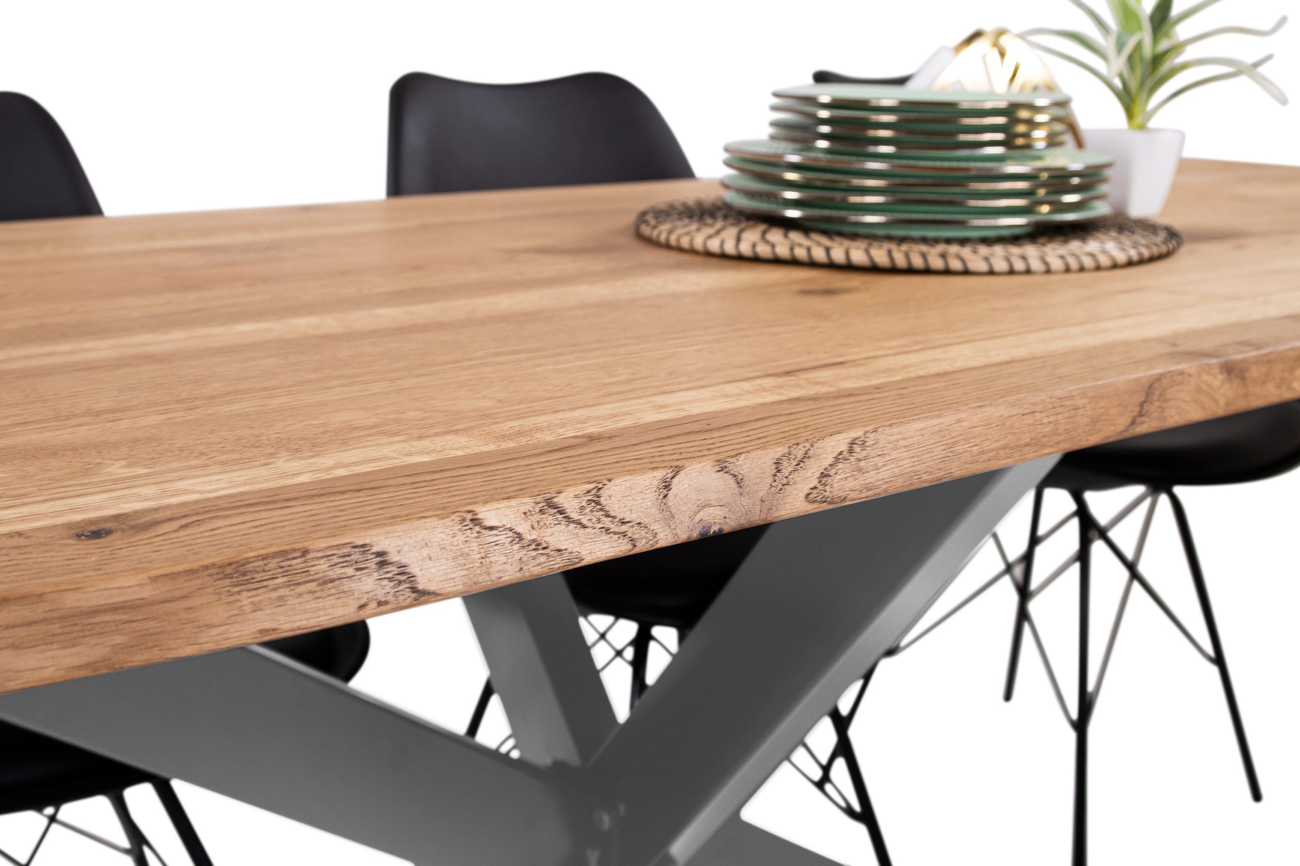 ✔ Massive Tischplatte aus Wildeiche – hochwertiges Echtholz, stabil, langlebig & eindrucksvoll gemasert.