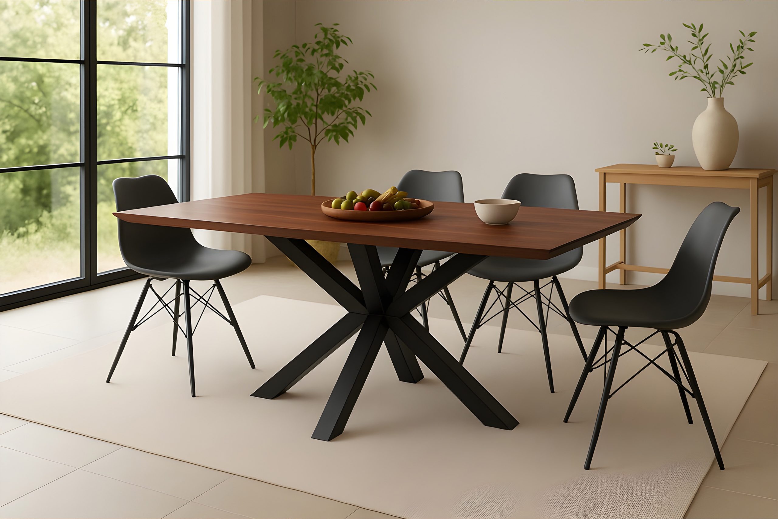 Esstisch Rita | 160 x 85 cm | Akazienholz massiv kastanienfarben | Spider-Gestell Schwarz | Schweizer Kante