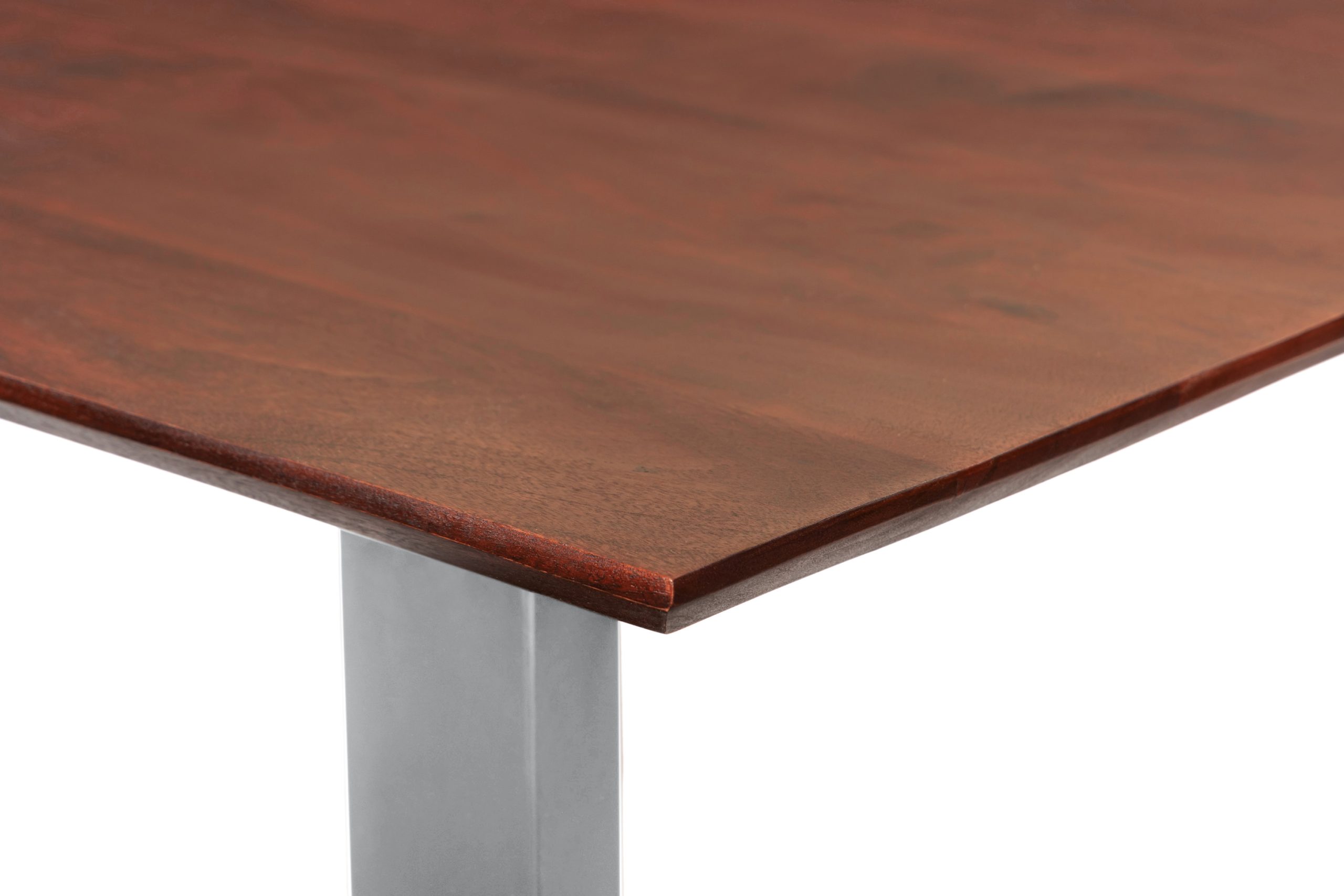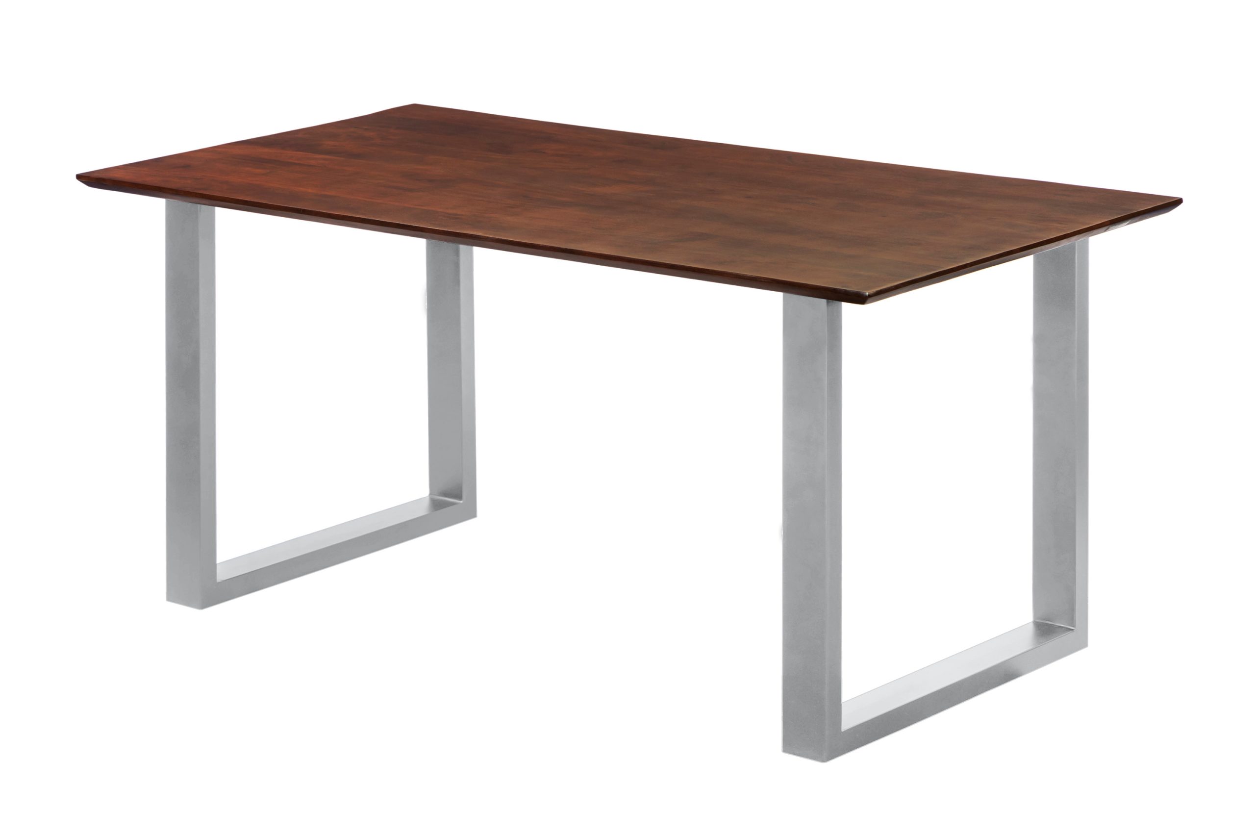 Esstisch Rita | 160 x 85 cm | Akazienholz massiv kastanienfarben | U-Gestell Silber | Schweizer Kante