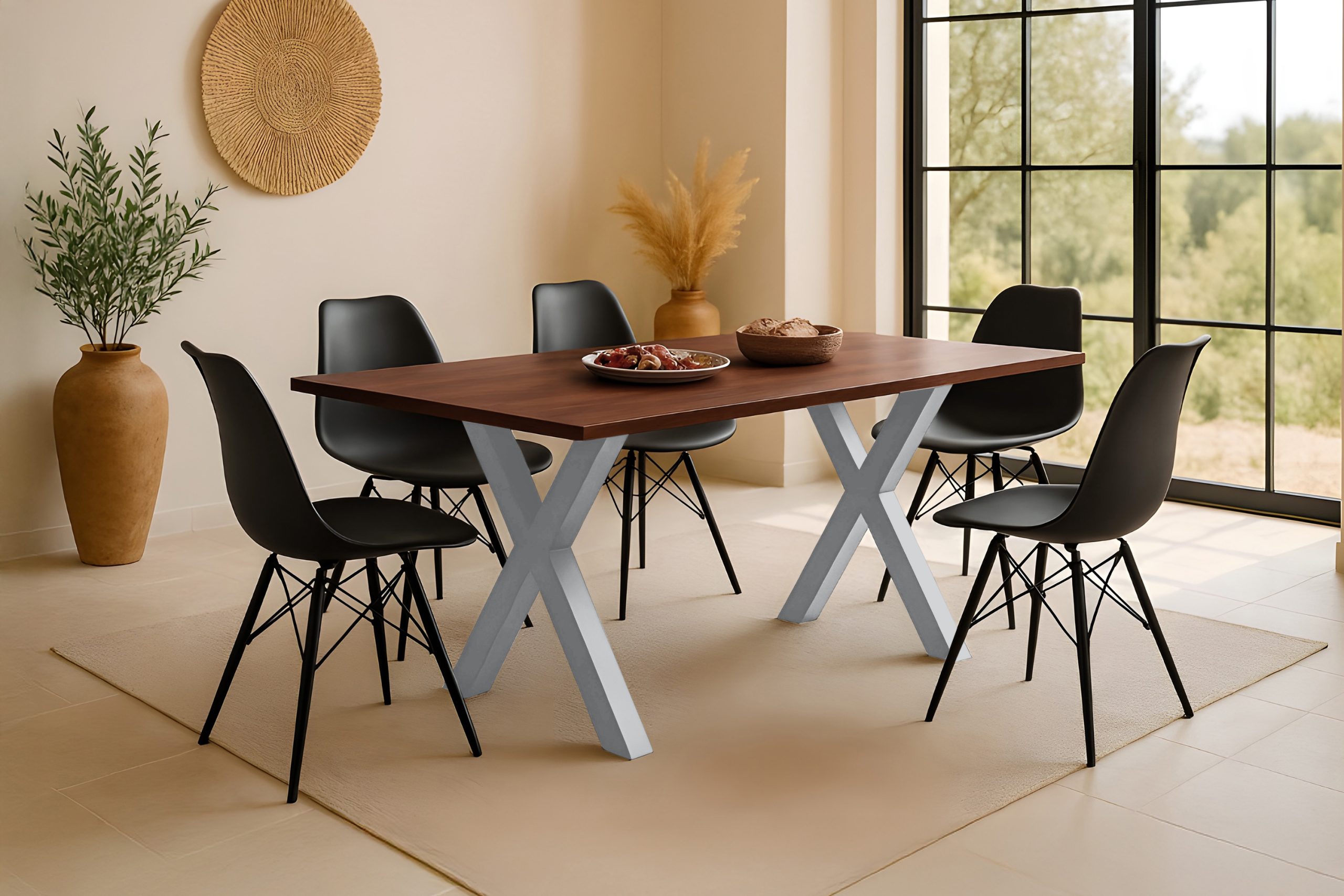 ✔ Robustes X-Gestell – lackiertes Eisen in elegantem Silber