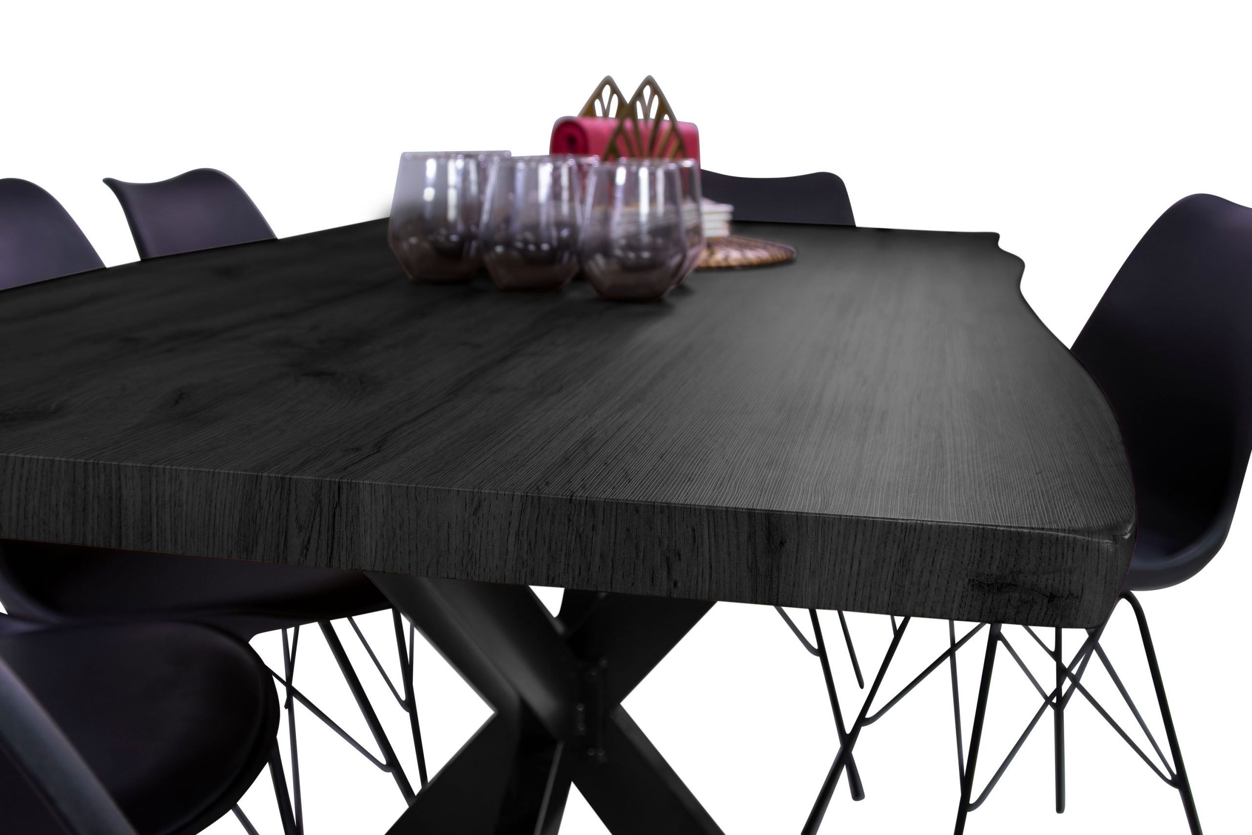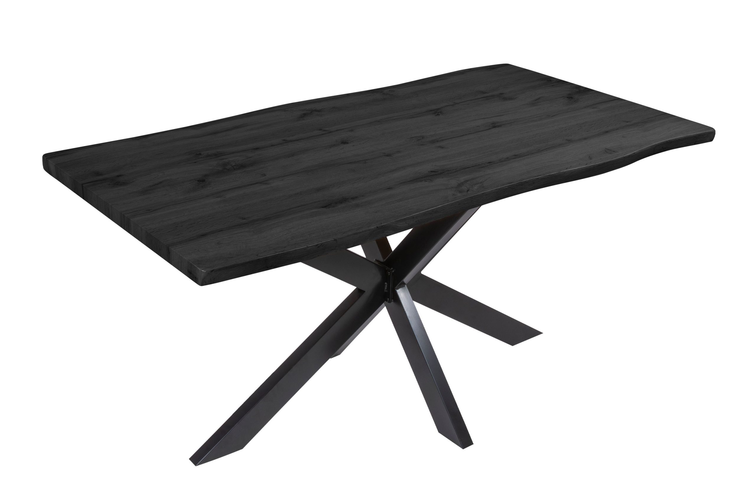 Esstisch Josy | Holz Grau-Optik | Spider-Gestell Metall schwarz | 160 x 85 cm | 40 mm Tischplatte mit gefräster Baumkante