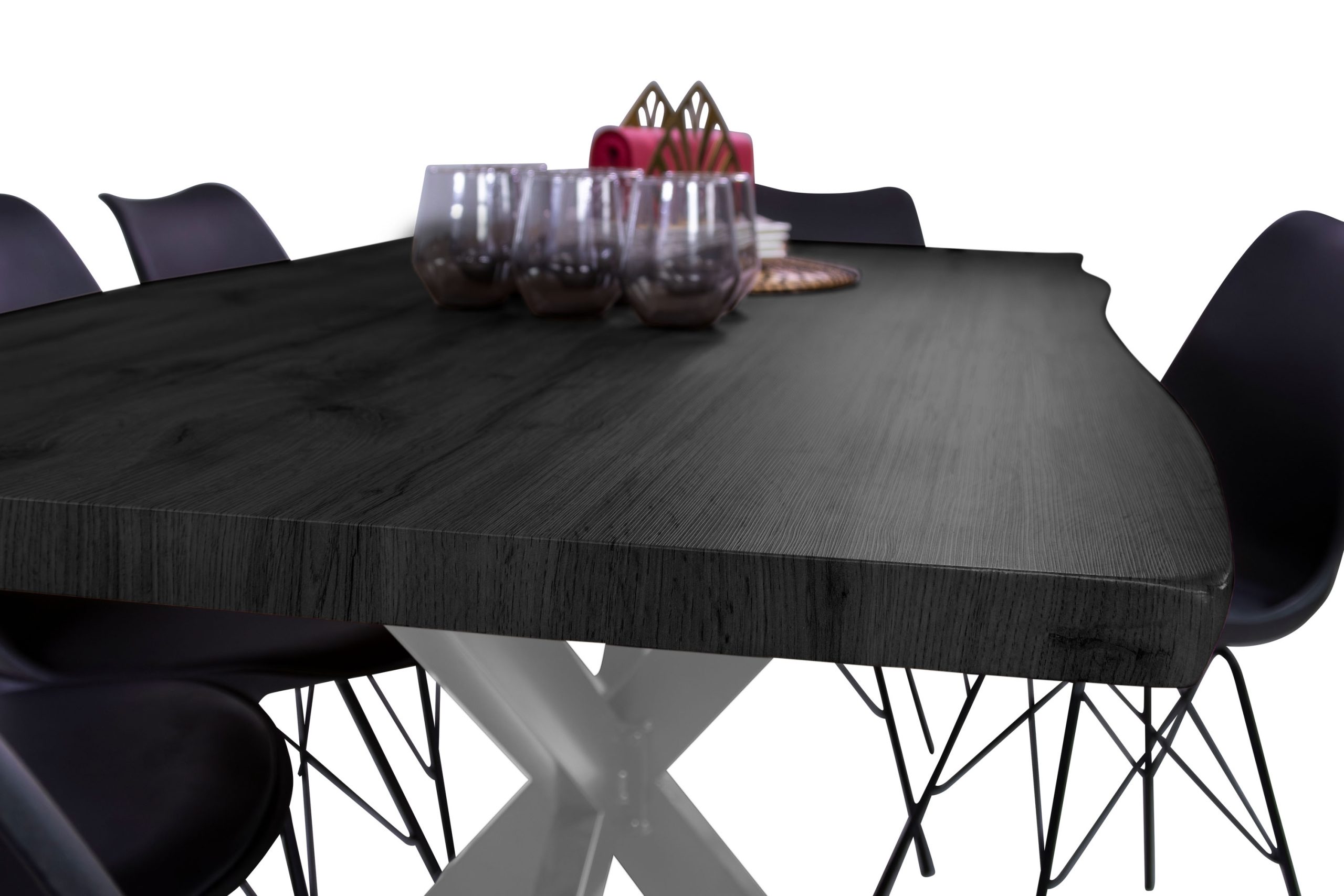 Esstisch Josy | Holz Grau-Optik | Spider-Gestell Metall silber | 160 x 85 cm | 40 mm Tischplatte mit gefräster Baumkante