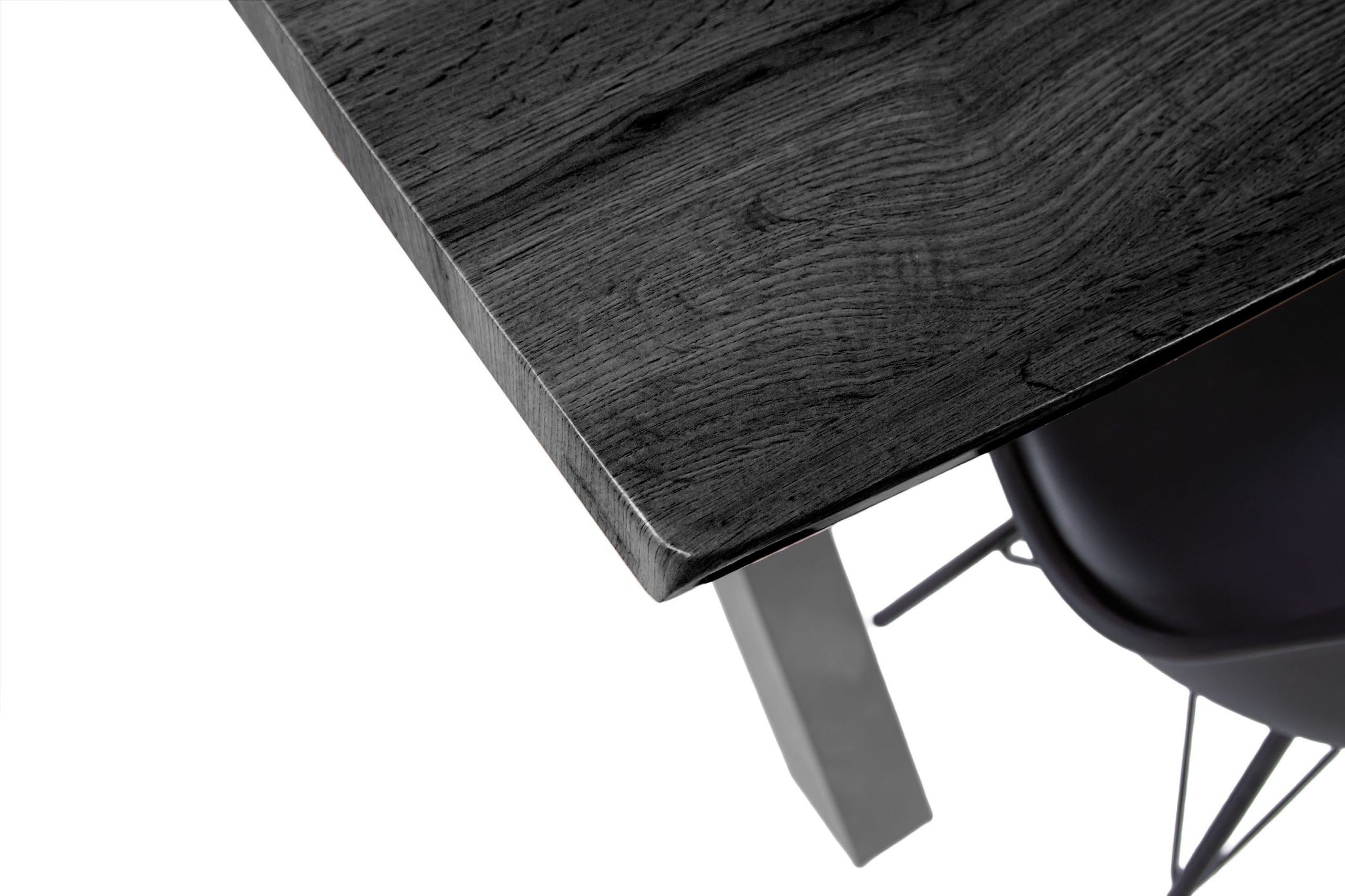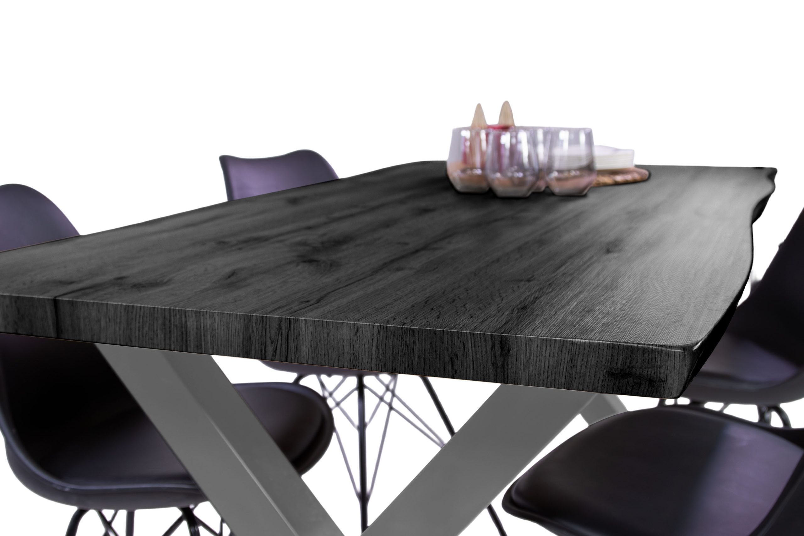 Esstisch Josy | Holz Grau-Optik | X-Gestell Metall silber | 160 x 85 cm | 40 mm Tischplatte mit gefräster Baumkante