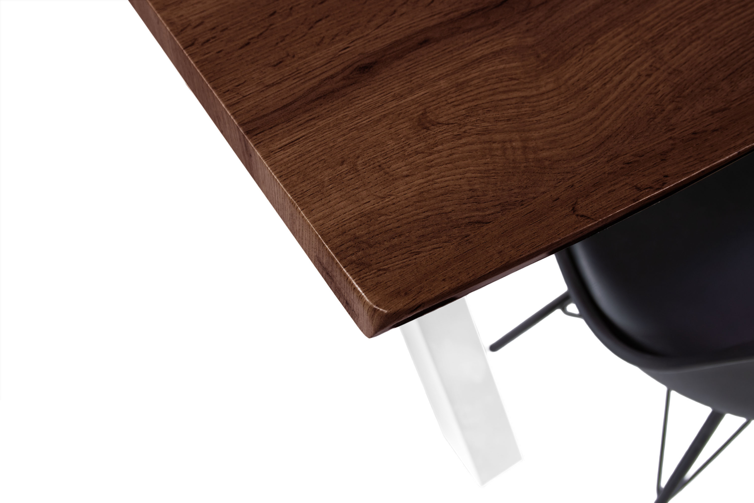 Durch die hohle Bauweise bleibt der Tisch leicht und einfach zu bewegen, während die gefräste Baumkante ihn optisch wie einen Massivholztisch wirken lässt, aber gleichzeitig erschwinglicher und pflegeleichter bleibt.