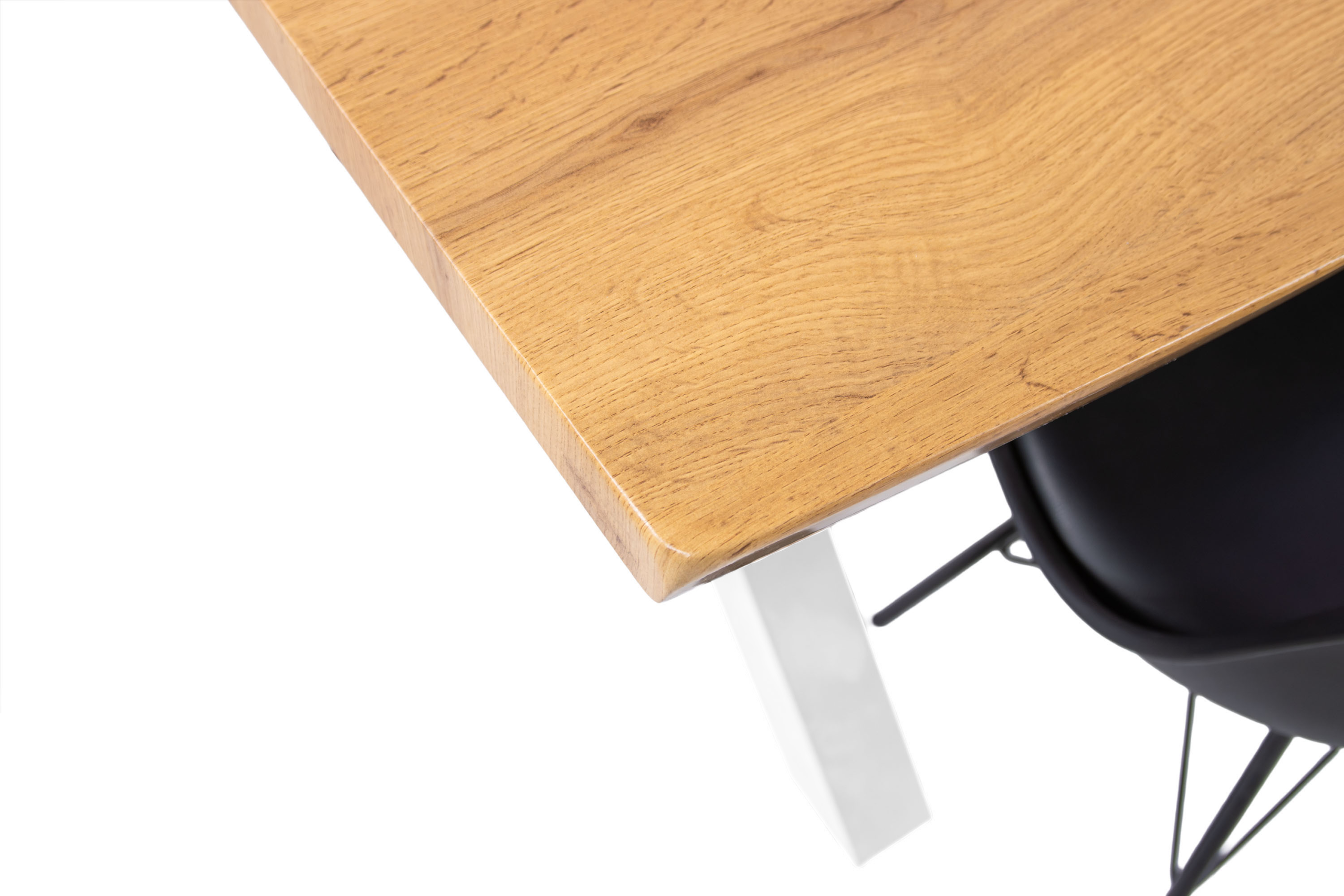 Durch die hohle Bauweise bleibt der Tisch leicht und einfach zu bewegen, während die gefräste Baumkante ihn optisch wie einen Massivholztisch wirken lässt, aber gleichzeitig erschwinglicher und pflegeleichter bleibt.