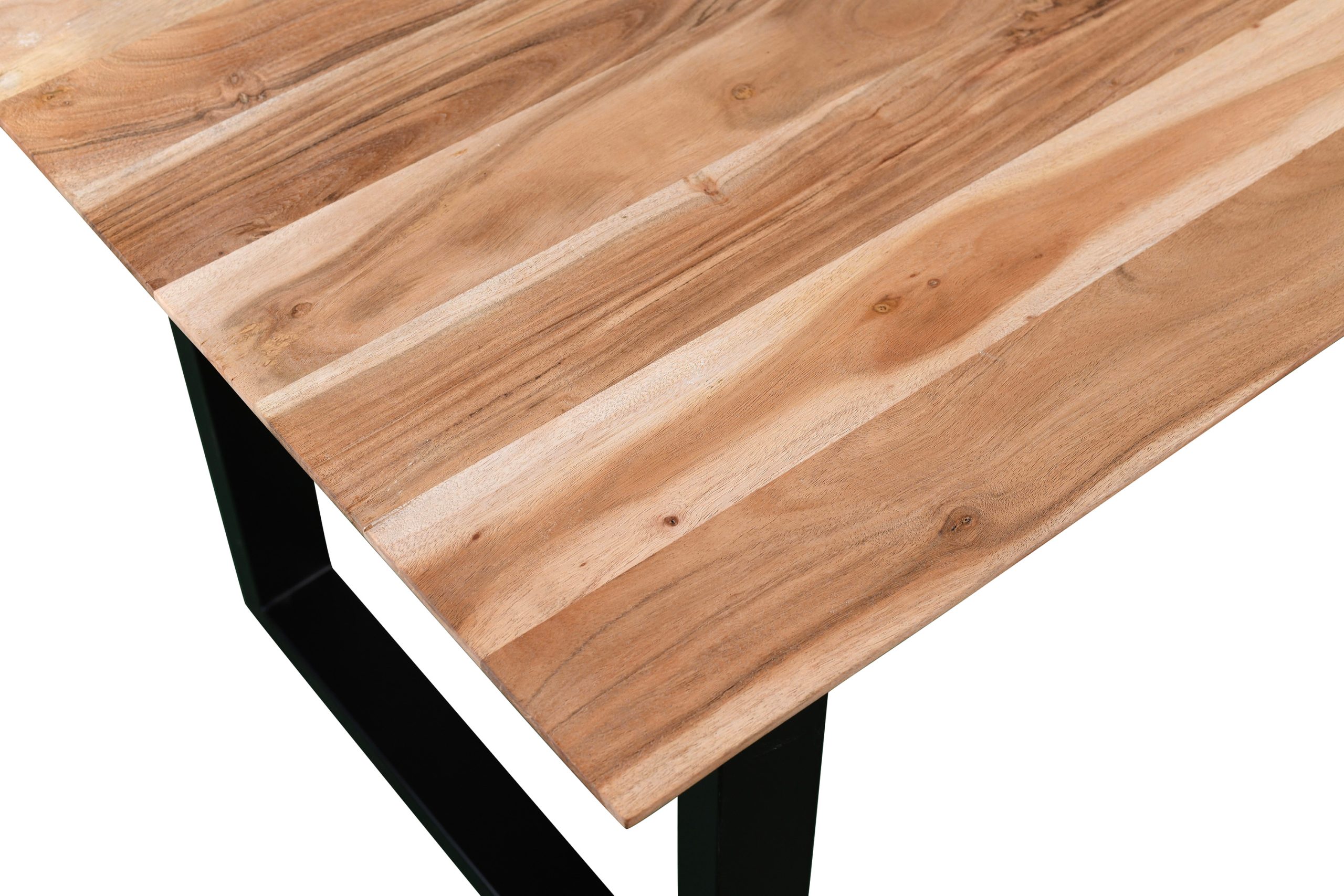 - Das formschöne und schwarz lackierte U-Gestell aus Eisen bildet einen spannenden Kontrast zur massiven Tischplatte und sorgt für einen stabilen Stand.