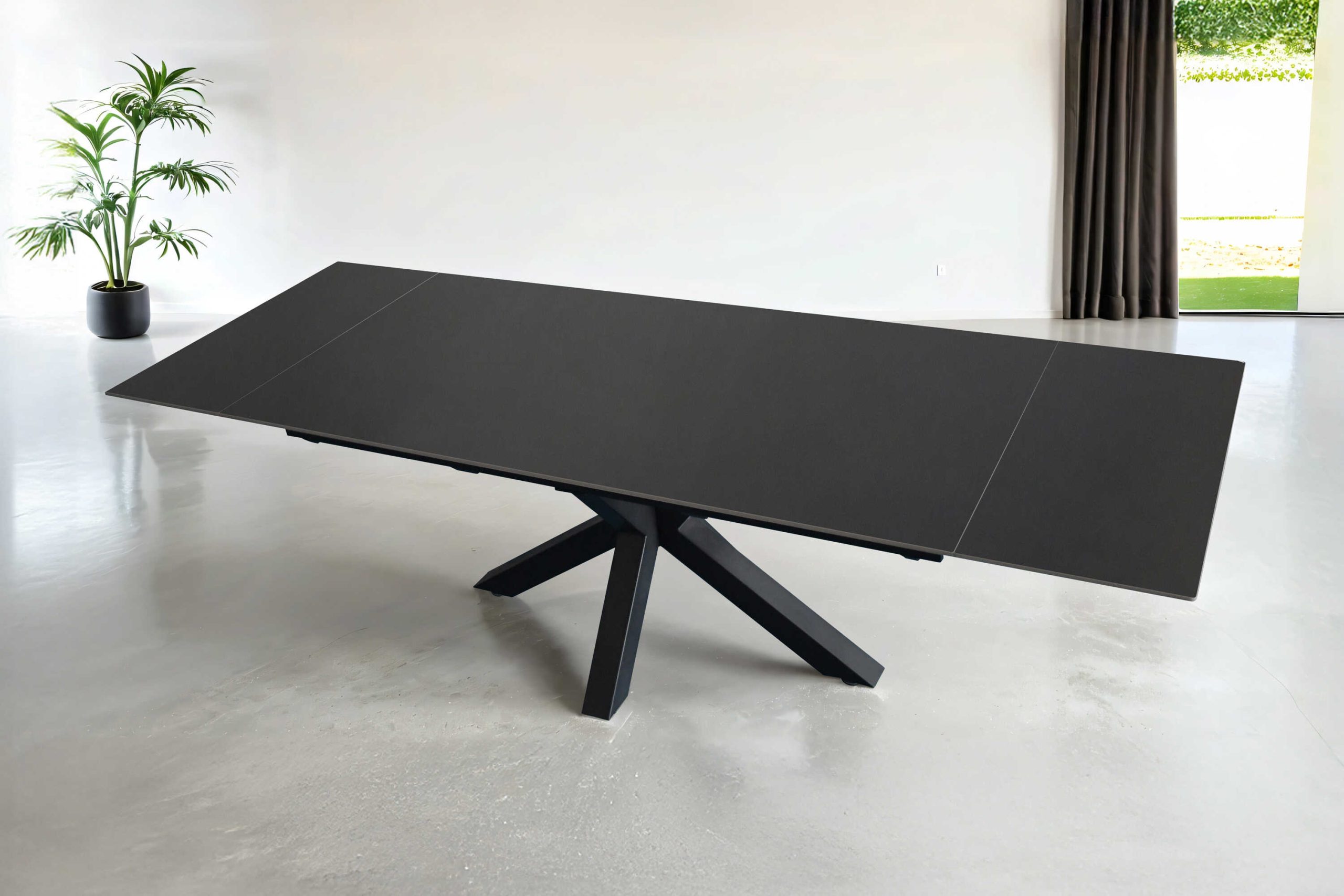 Esszimmertisch Mimo | 180 (260) x 90 cm | ausziehbar | 12 mm Keramikplatte dunkelgrau matt | Spider-Gestell aus Metall Schwarz