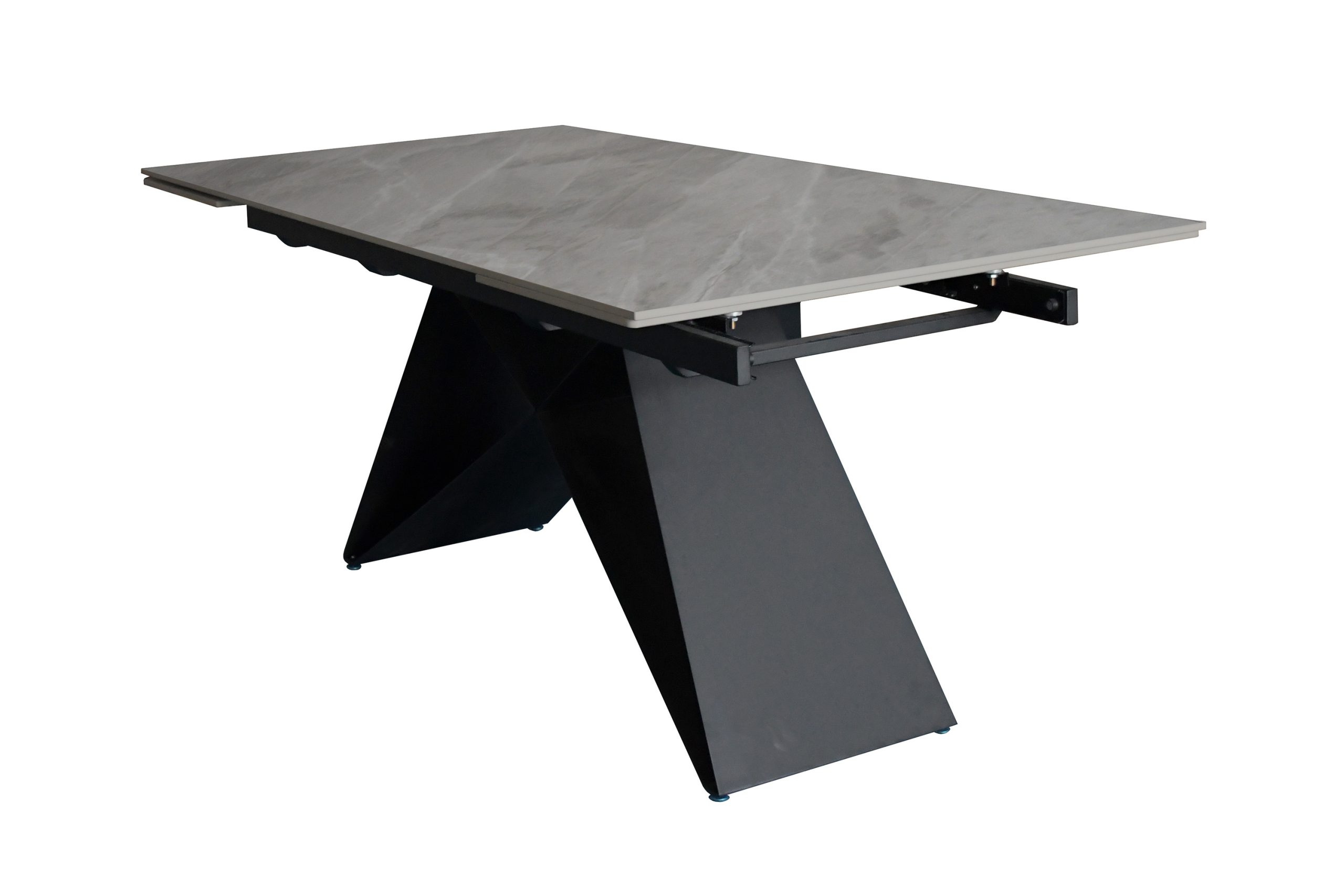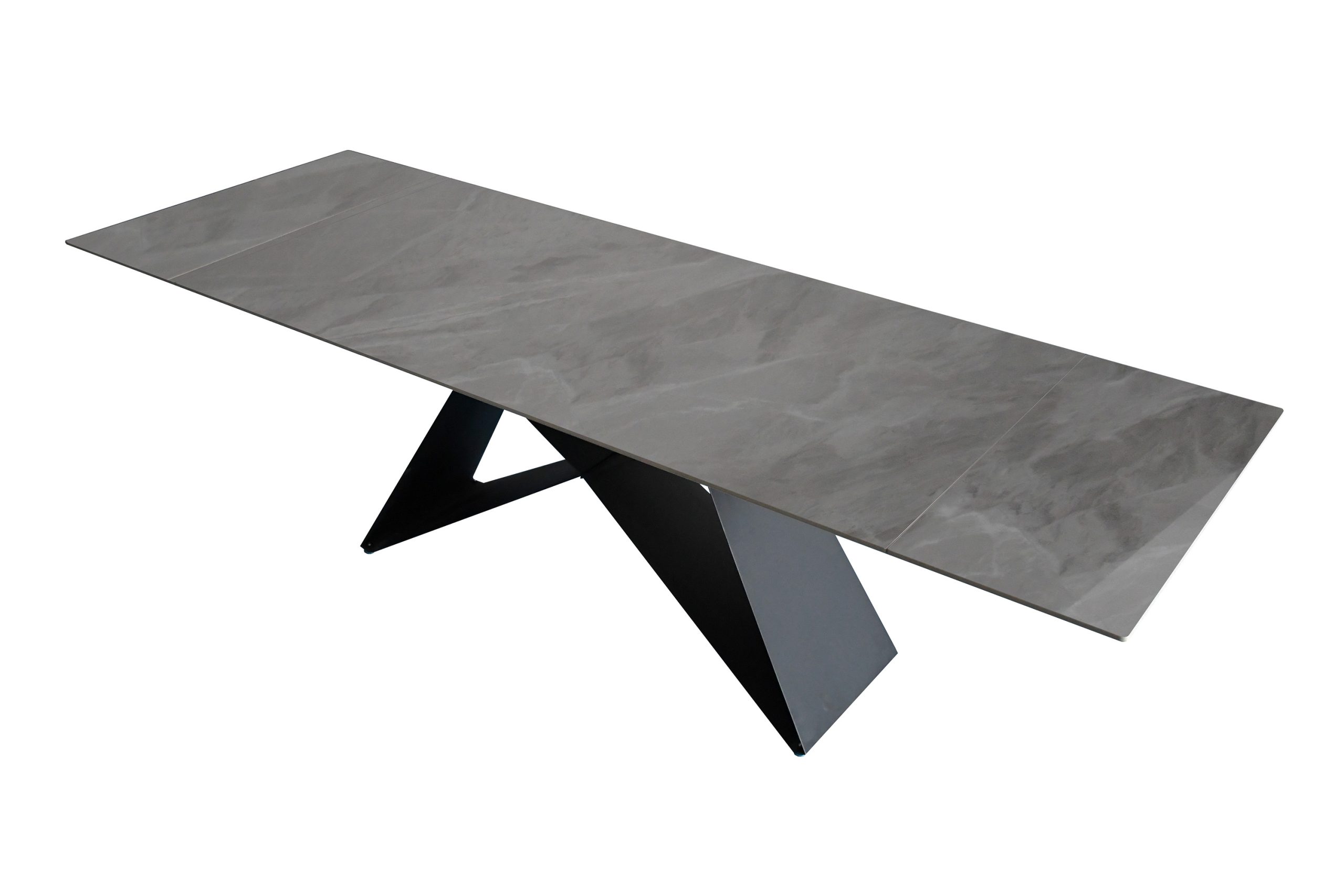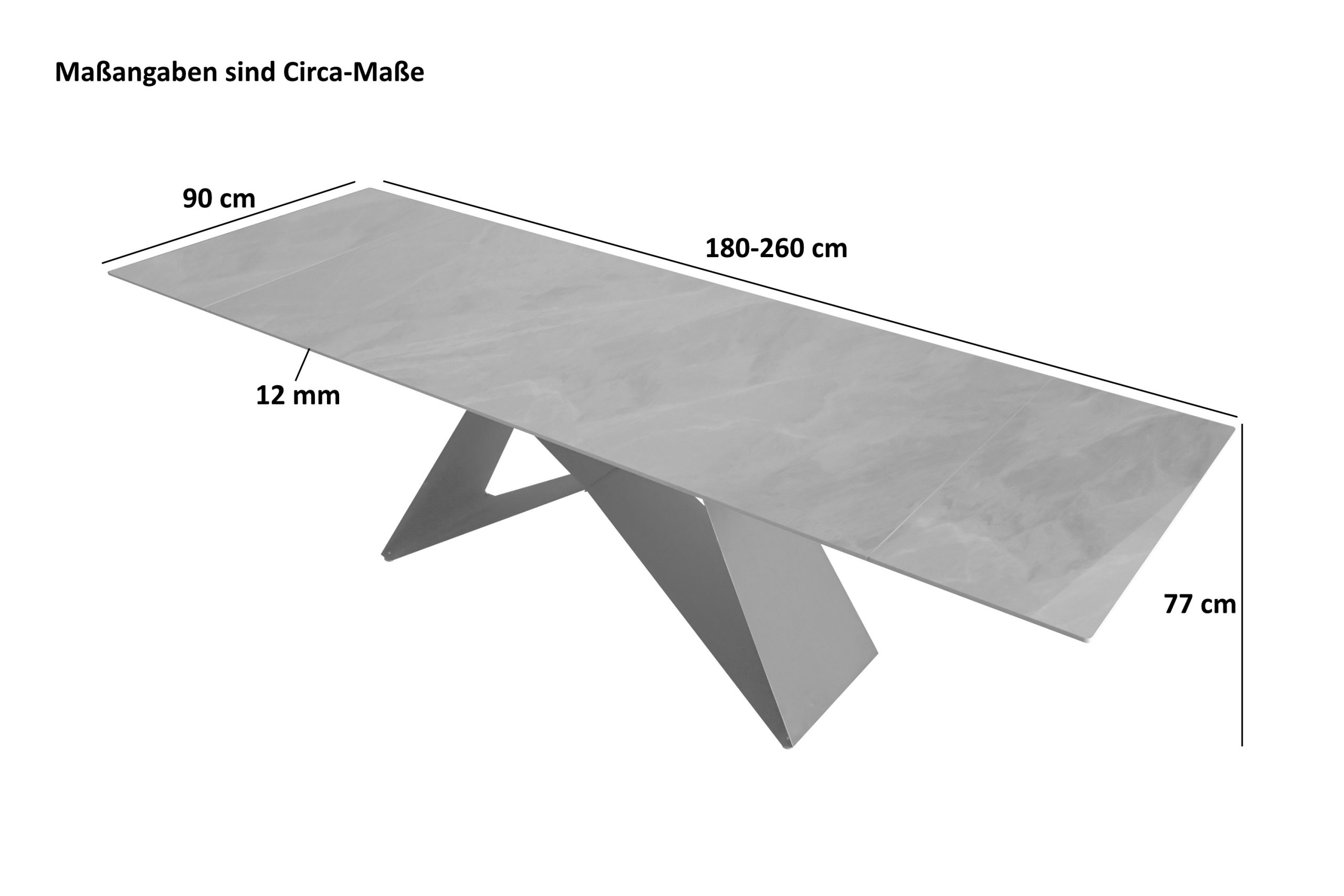 Esstisch Mia | 180 (260) x 90 cm | ausziehbar | 12 mm Keramikplatte hellgrau glänzend | Butterfly-Gestell Schwarz