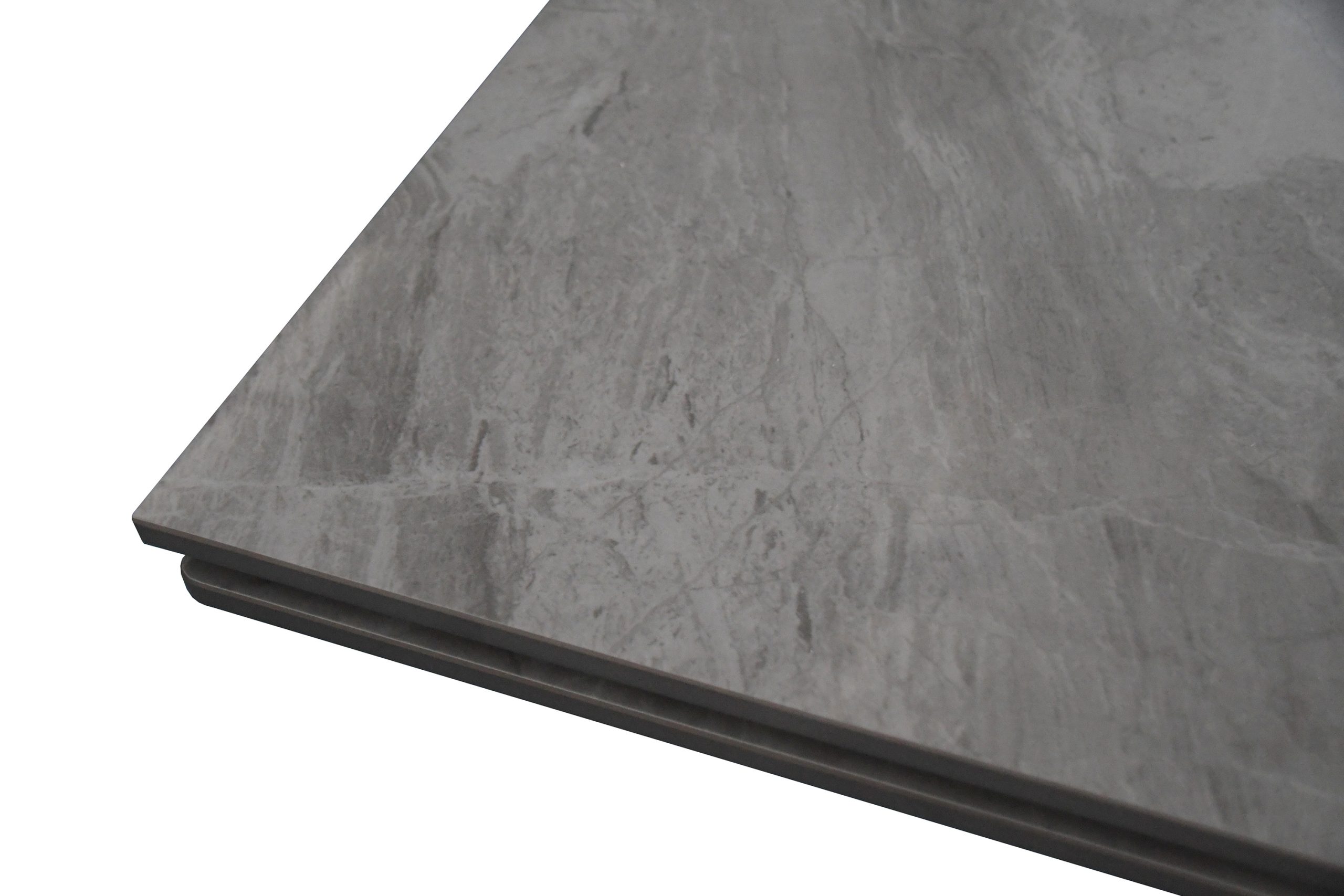 Der Esstisch Mia verbindet modernes Design mit höchster Funktionalität. Die 12 mm starke Tischplatte aus hochwertiger Keramik in elegantem Hellgrau reflektiert das Licht sanft und verleiht Ihrem Esszimmer eine zeitgemäße, edle Note. Sie ist besonders kratz- und hitzebeständig, wodurch sie selbst im Alltag dauerhaft makellos bleibt.