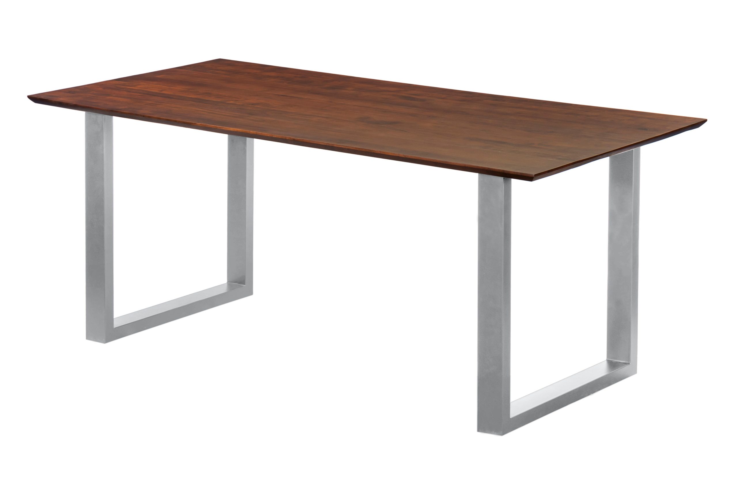 Esstisch Rita | 180 x 90 cm | Akazienholz massiv kastanienfarben | U-Gestell Silber | Schweizer Kante