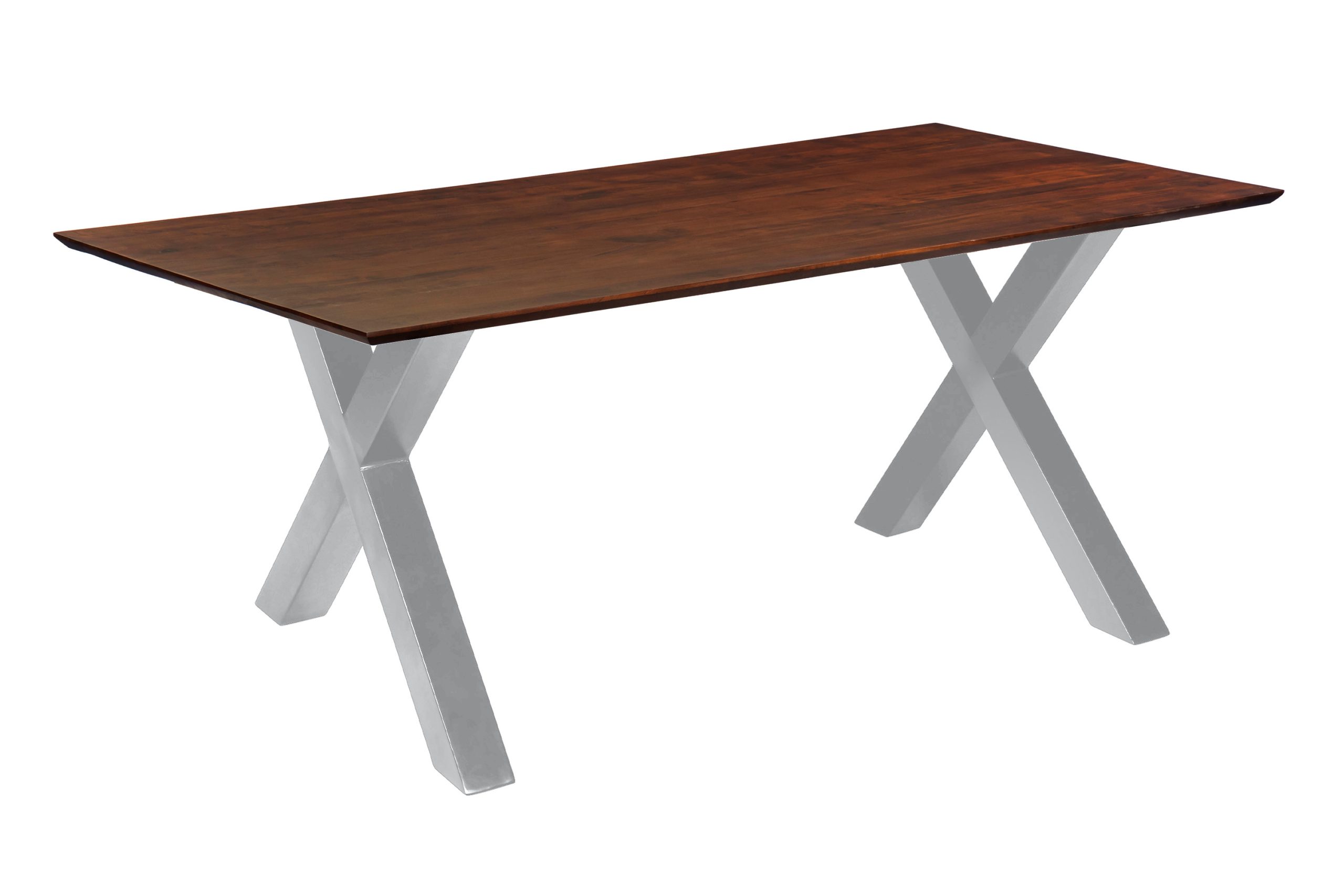 Esstisch Rita | 180 x 90 cm | Akazienholz massiv kastanienfarben | X-Gestell Silber | Schweizer Kante