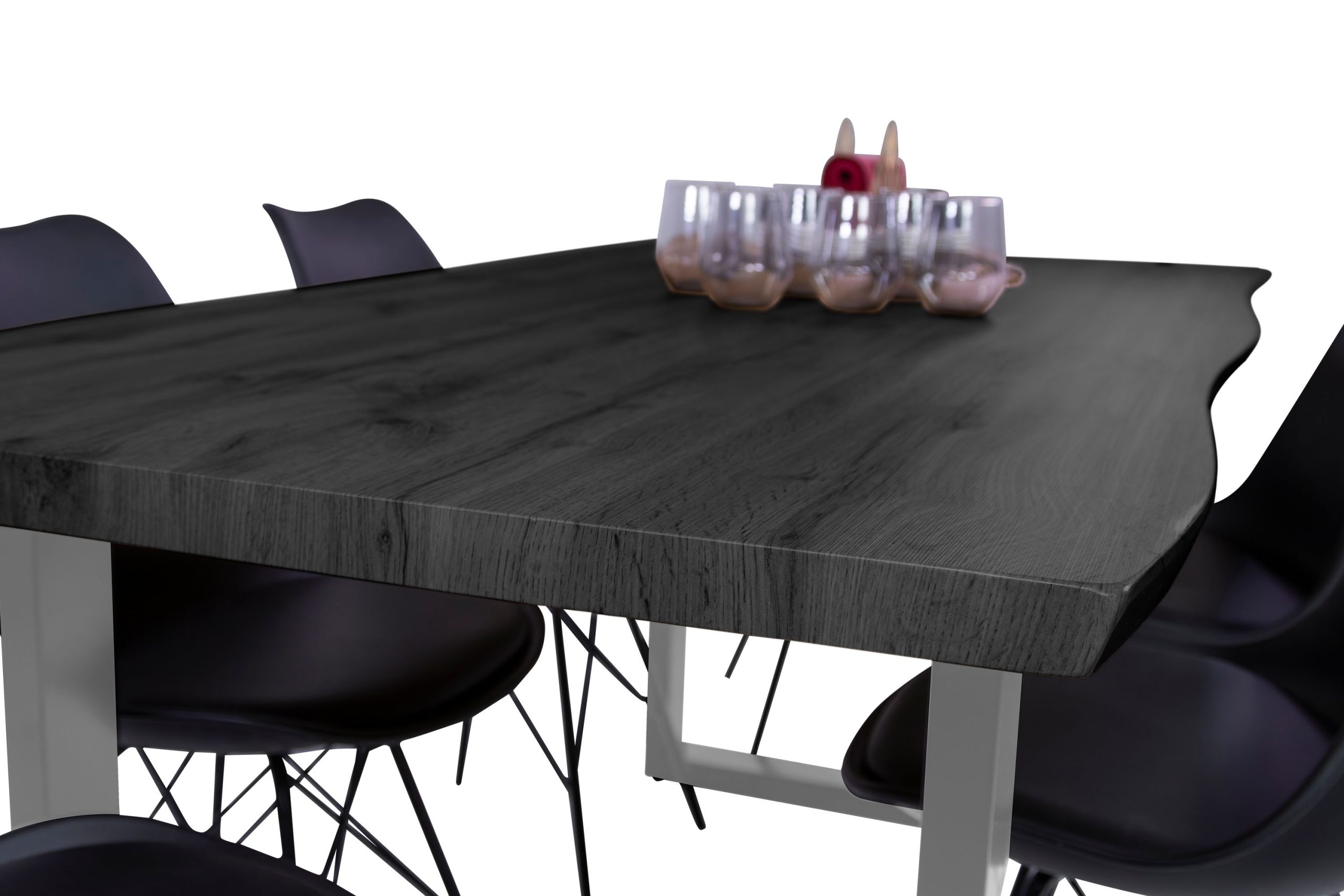 Die MDF-Tischplatte des Esstisches Josy begeistert mit einer warmen Grau-Optik, die natürliche Eleganz in jeden Wohnbereich bringt. Die gefräste Baumkante verleiht dem Tisch eine hochwertige Massivholz-Ästhetik, während die pflegeleichte Oberfläche bestens für den täglichen Einsatz geeignet ist.