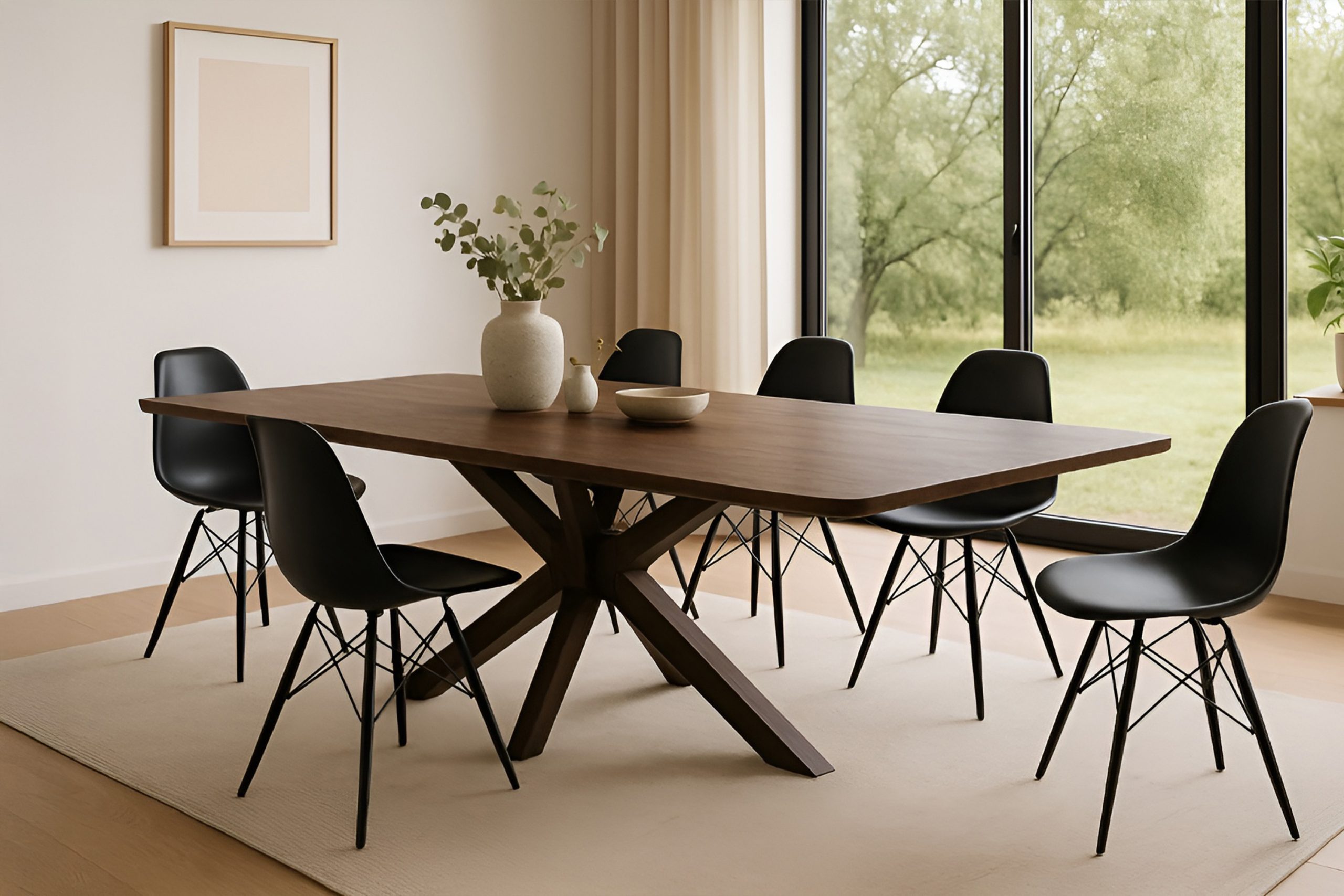Esstisch Roberto | Massivholz Akazie | Farbe: Kastanie | 200 x 100 cm | Spider-Gestell Holz in Kastanienfarben | Schweizer Kante & abgerundete Ecken