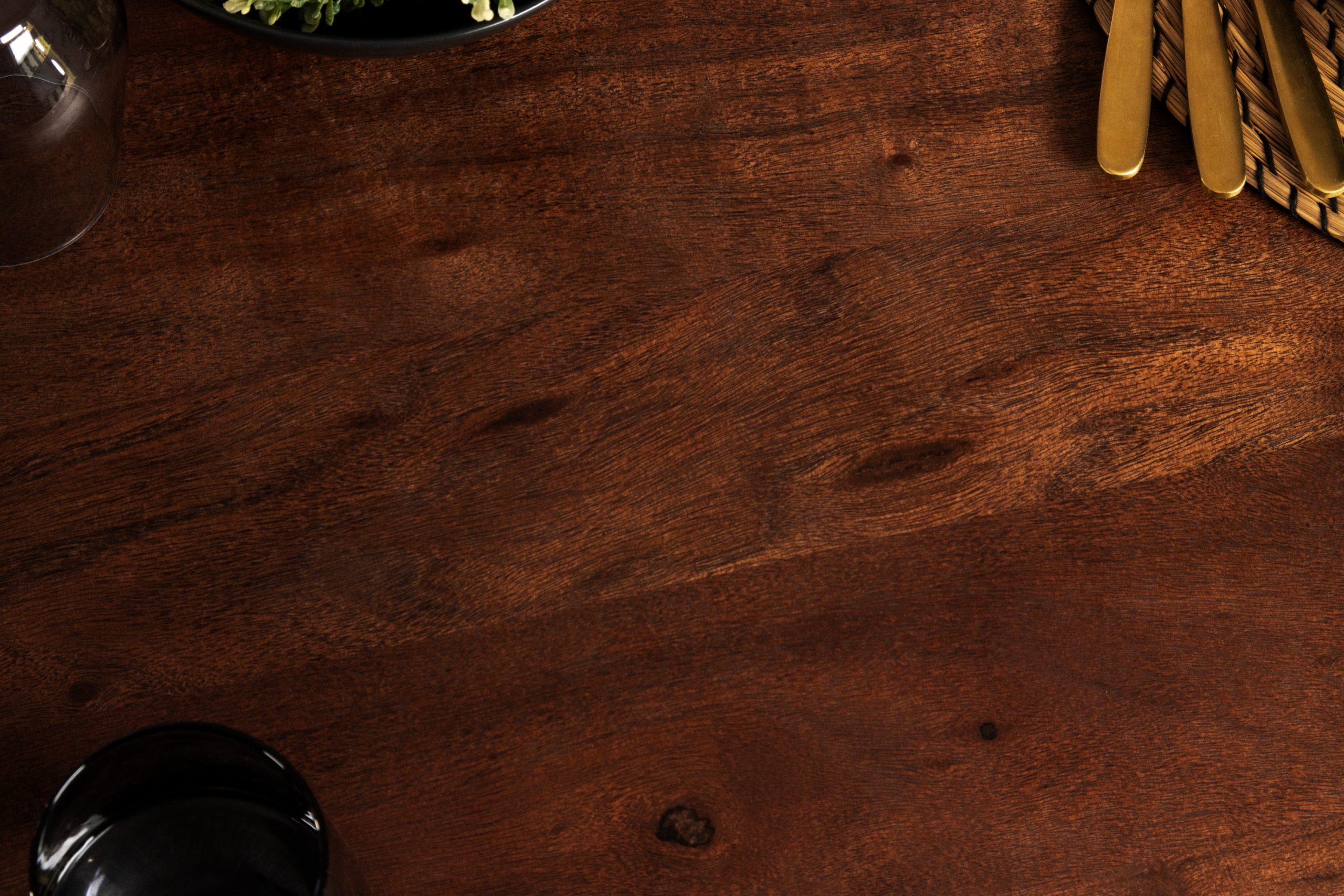 Die Tischplatte aus massiver Akazie begeistert mit ihrer einzigartigen Maserung, warmen kastanienfarbigen Lackierung und natürlicher Holzstruktur. Akazienholz gehört zu den härtesten & widerstandsfähigsten Hölzern der Welt. Jede Platte ist ein Unikat. Dank der pflegeleichten Oberfläche bleibt der Tisch lange erhalten und lässt sich mühelos reinigen.
