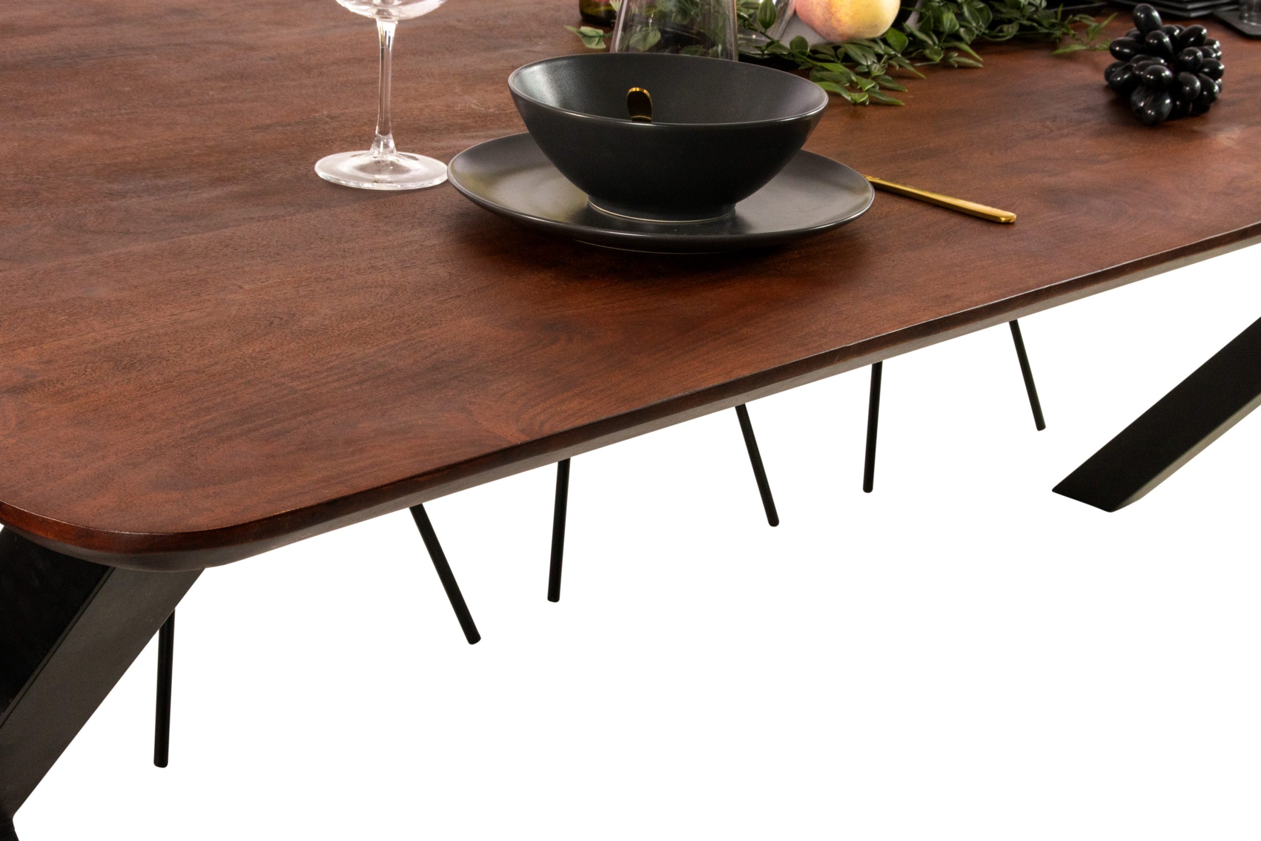 Esstisch Roberto | Massivholz Akazie | Farbe: Kastanie | 200 x 100 cm | X-Gestell Metall schwarz | Schweizer Kante & abgerundete Ecken