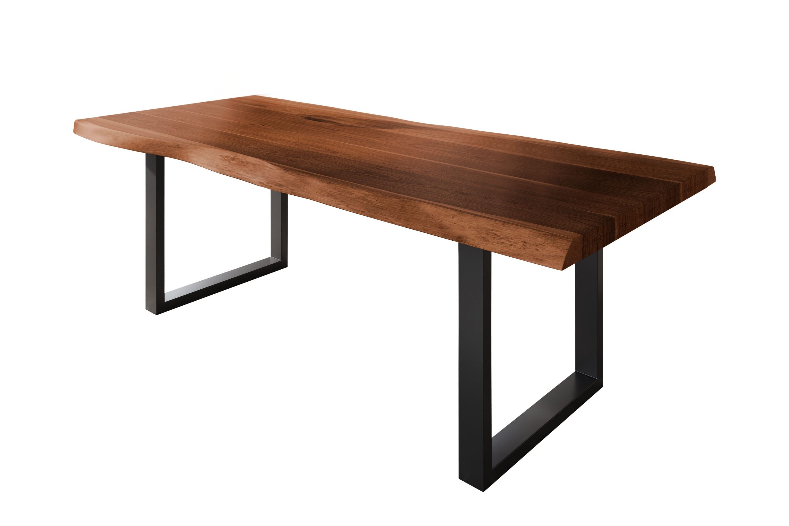 Esszimmertisch Atlas, 200 x 100 cm, massives Akazienholz nussbaumfarben, echte Baumkante, U-Gestell aus Metall Schwarz
