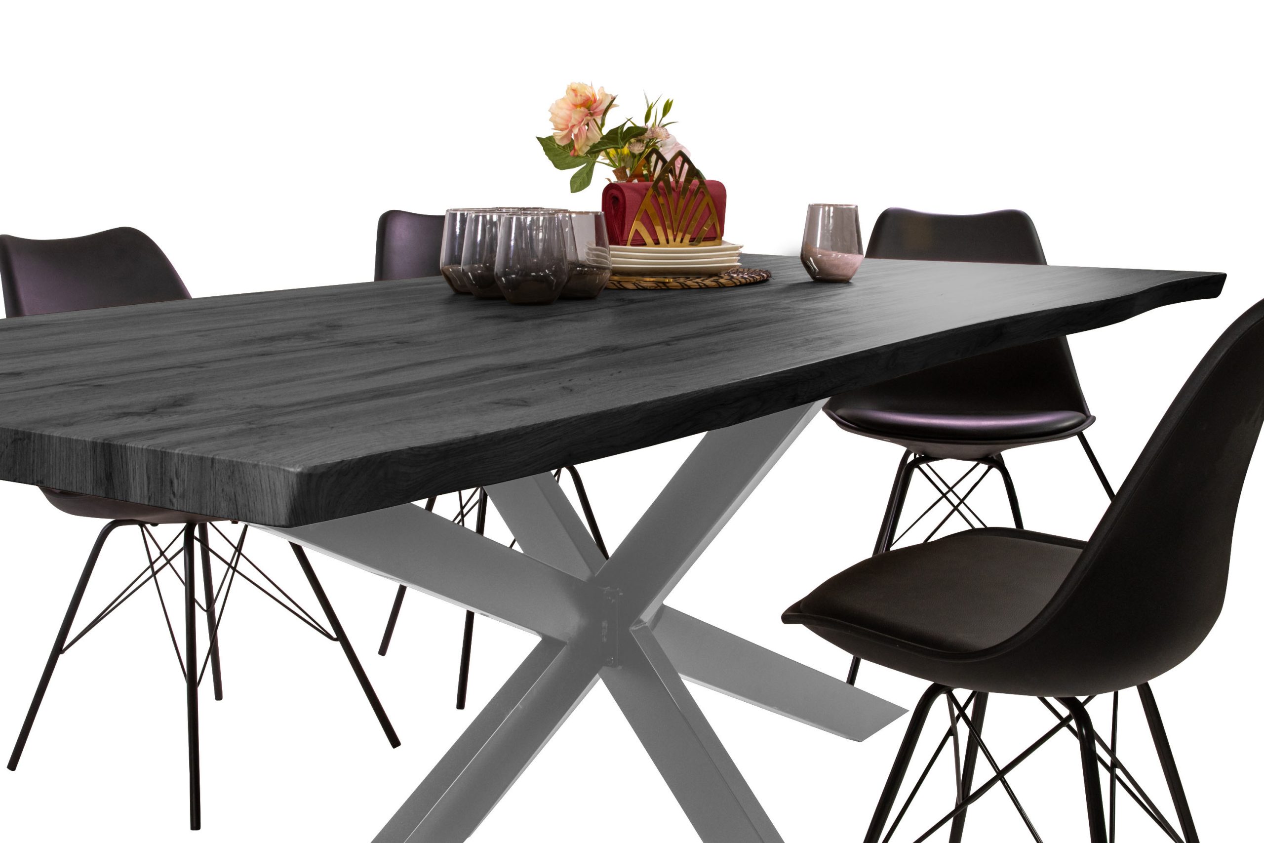 Esstisch Josy | Holz Grau-Optik | Spider-Gestell Metall silber | 200 x 100 cm | 40 mm Tischplatte mit gefräster Baumkante