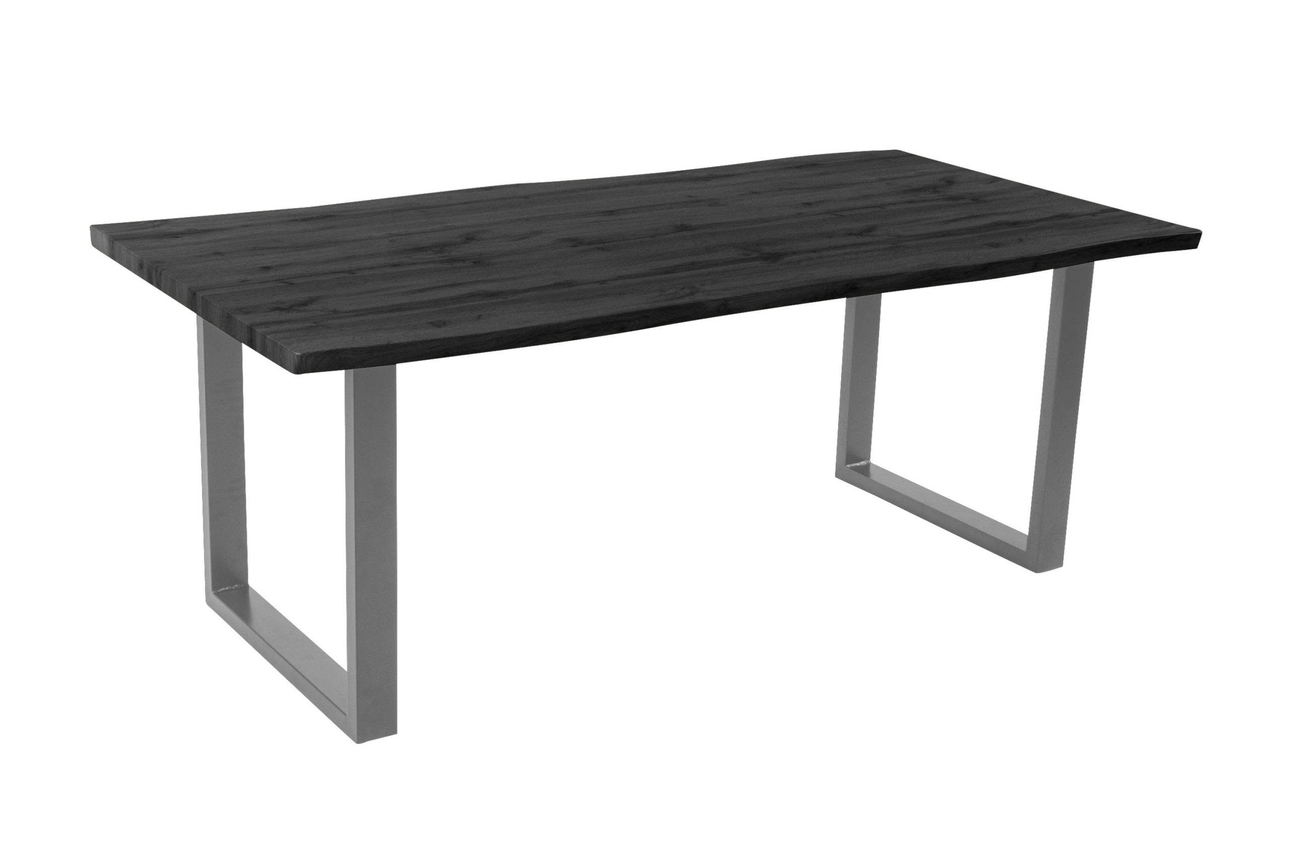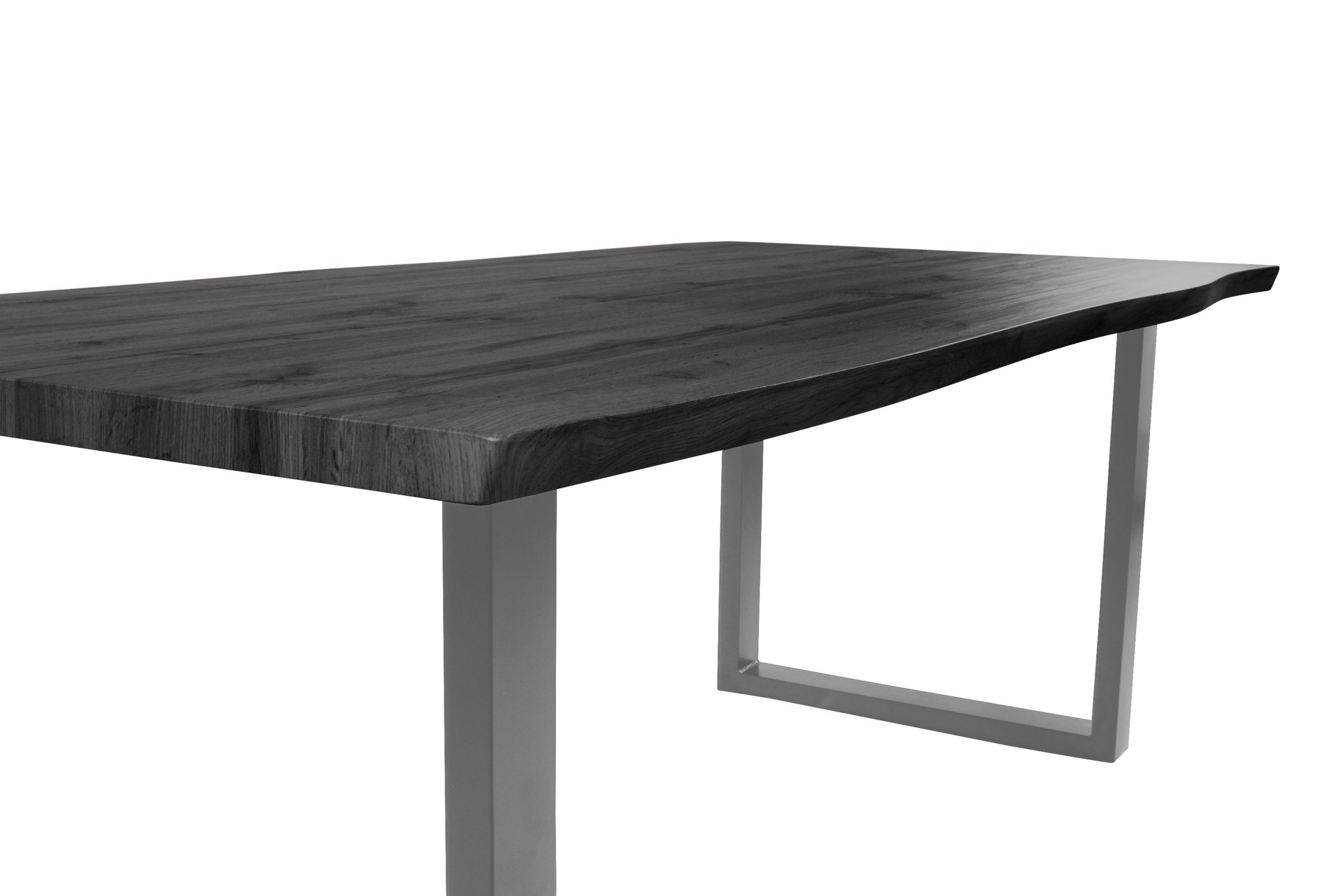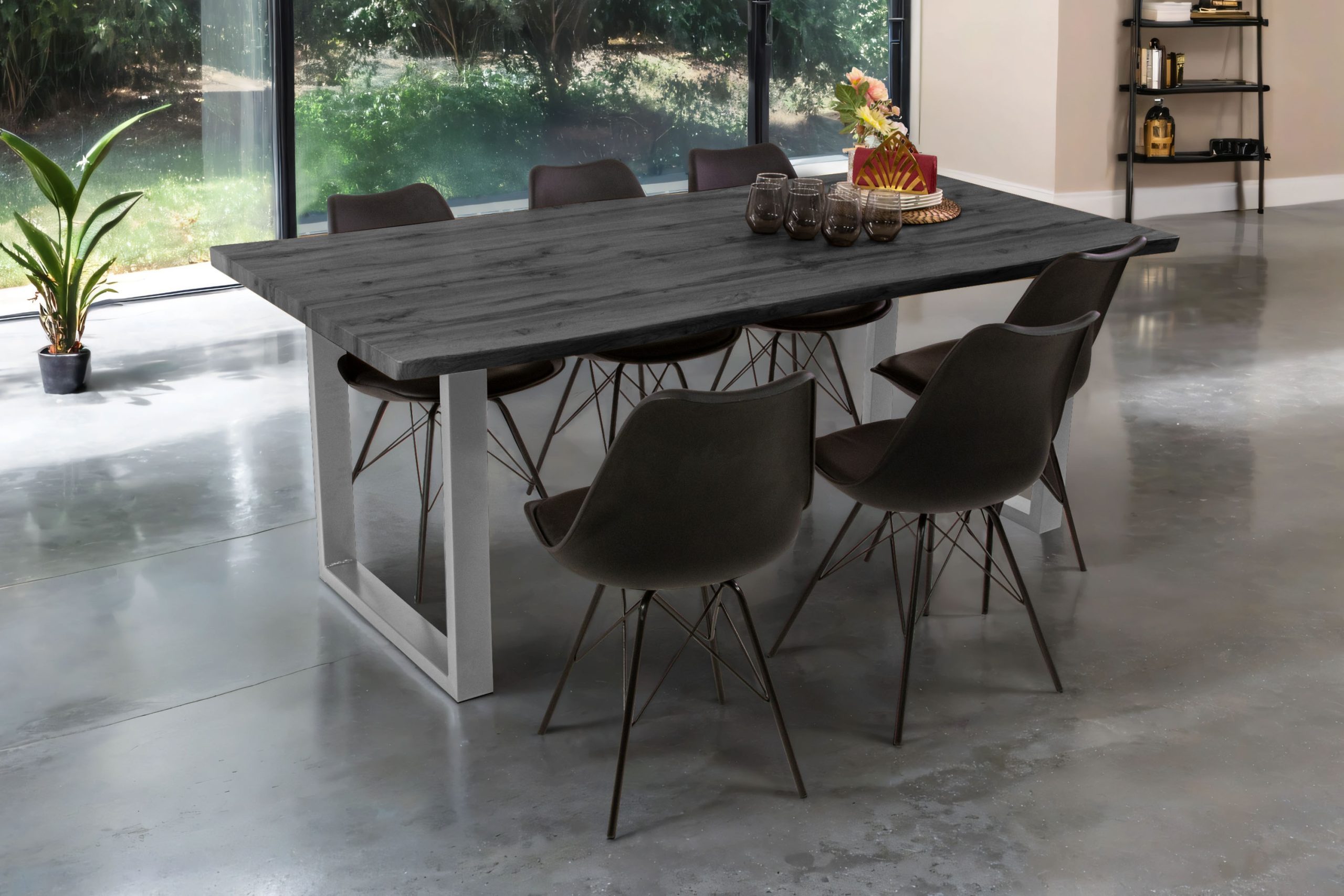 Esstisch Josy | 200 x 100 cm | Grau-Optik | U-Gestell Metall silber | 40 mm Tischplatte mit gefräster Baumkante