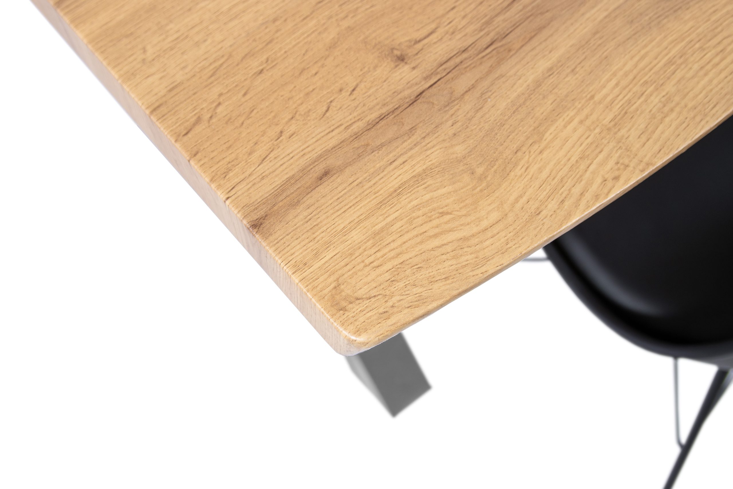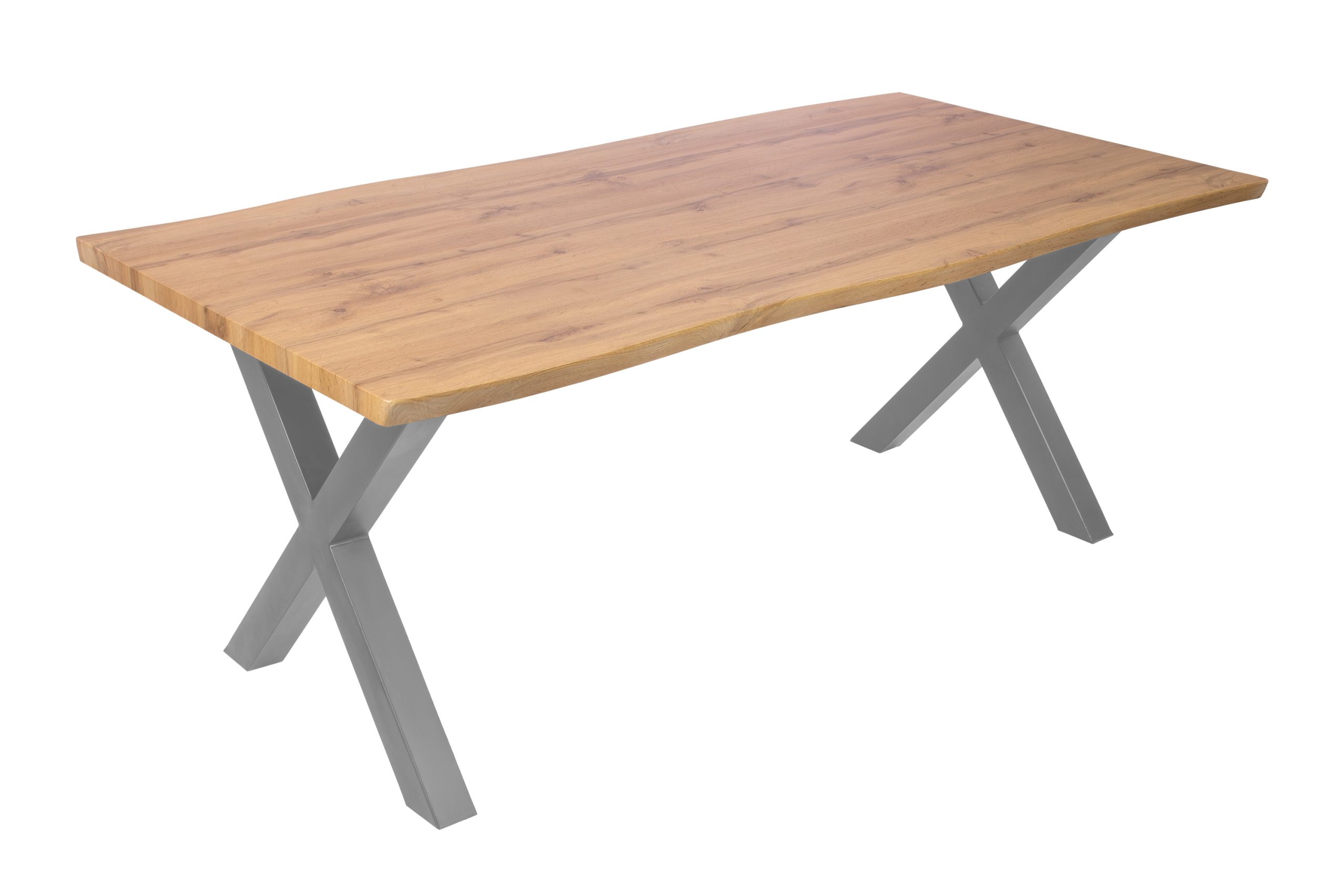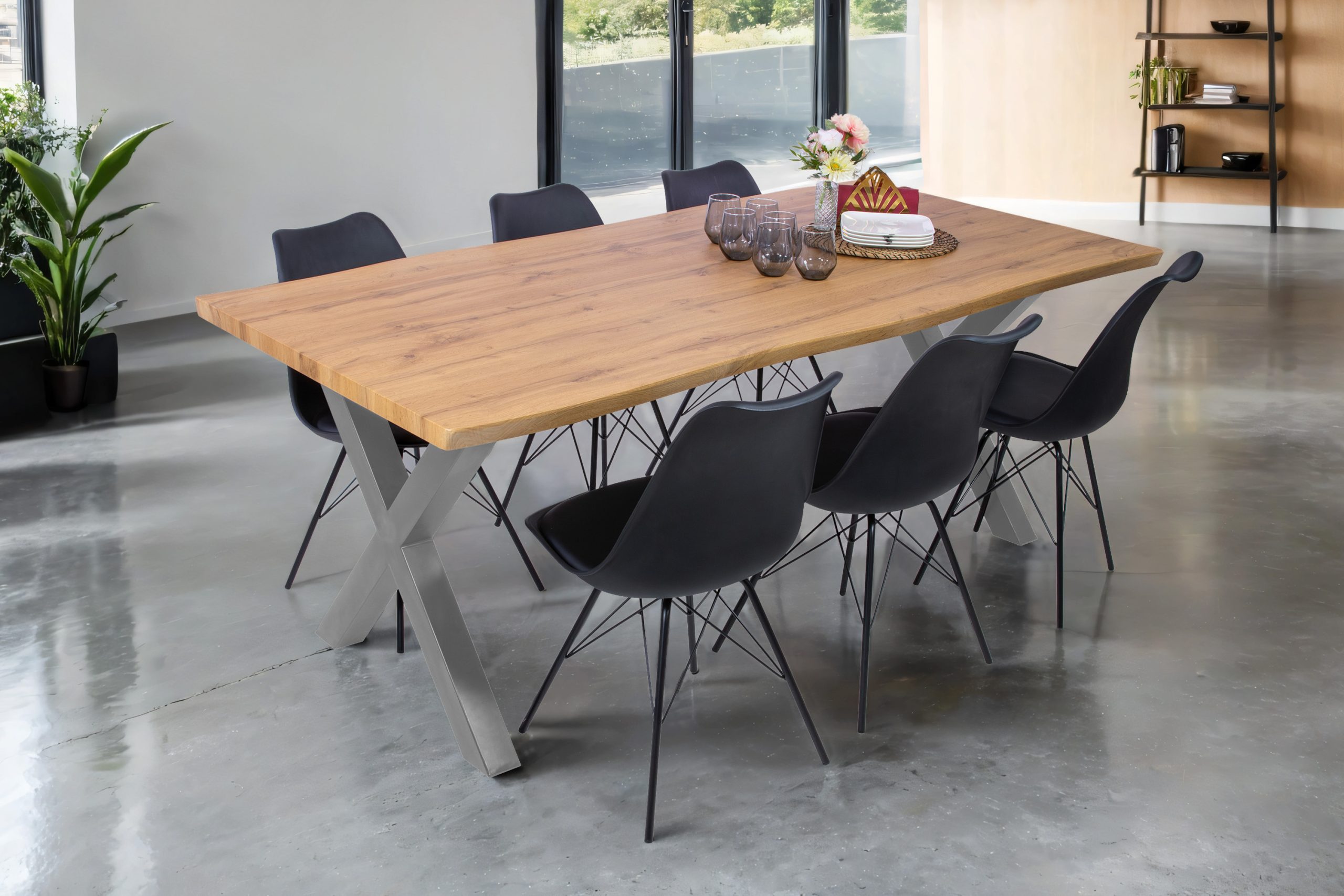 Esstisch Josy | Holz Wildeiche-Optik | X-Gestell Metall silber | 200 x 100 cm | 40 mm Tischplatte mit gefräster Baumkante